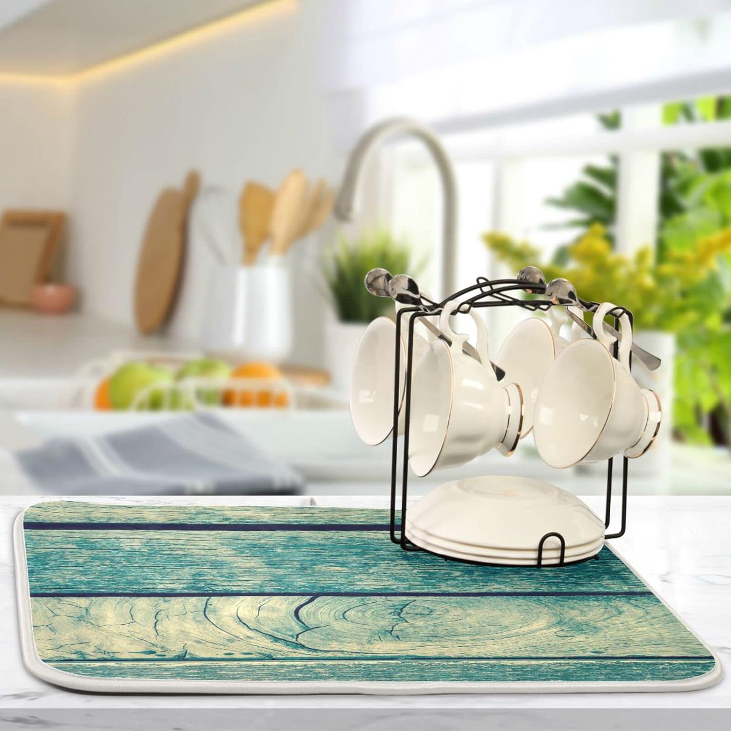 senya Super Absorbent Dish Drying Mat, Microfiber Fast-Drying Dish Mat, 24'' x 18'', Kitchen Dish Drying Pad, Vintage Retro Wooden Background, (g289343133p523c558s1114)