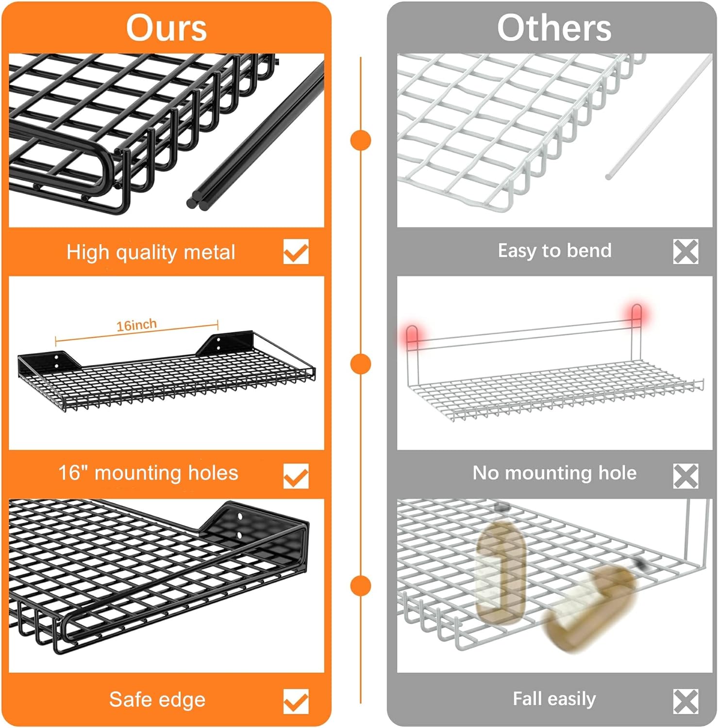 - Well Constructed: Garage wall mount shelving is made of high quality steel with powder coated finish and well constructed. Holds up to 65lbs/shelf.
