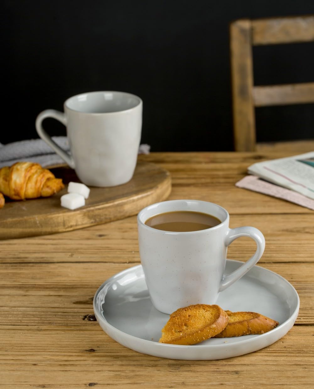 famiware Mars 4 Pieces Coffee Mug, 14 oz Tea Mug, Catering Mugs with Handle for Coffee, Tea, Cocoa, Milk, Light Gray