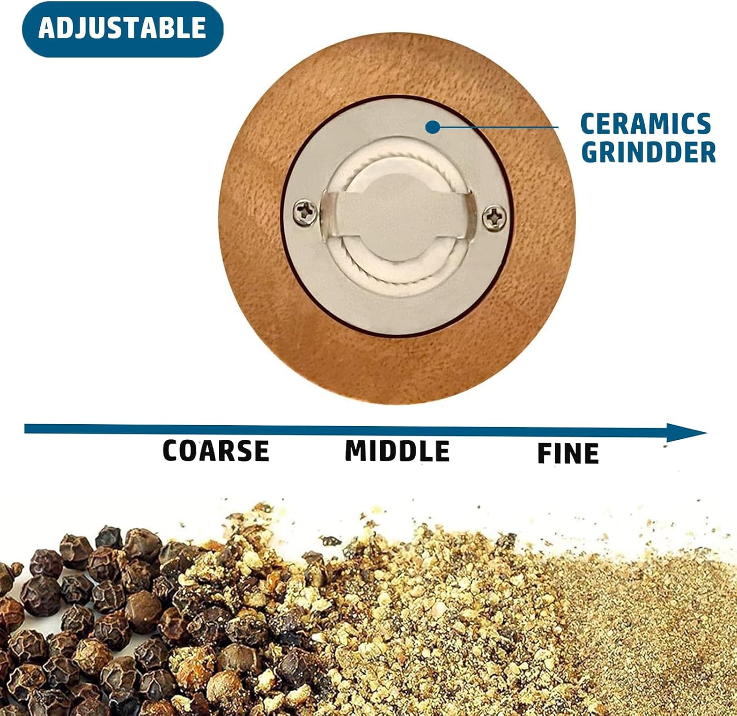 - Natural wood material: this manual salt and pepper mill set is made of natural oak wood, stainless steel and ceramic grinder, environmentally friendly acrylic material, non-corrosive, you can use it safely. This natural wooden salt and pepper mill is an elegant and unusual decoration in the kitchen.