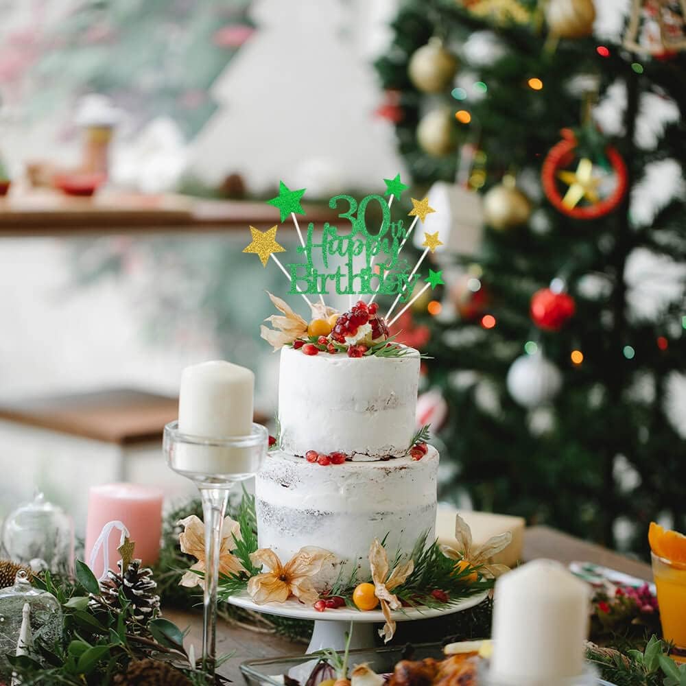 Glittery 30th Happy Birthday Cake Topper with Star,Personalised 30 Birthday Cake Toppers Party Decorations Party Supplies for Boys Girls Green Gold