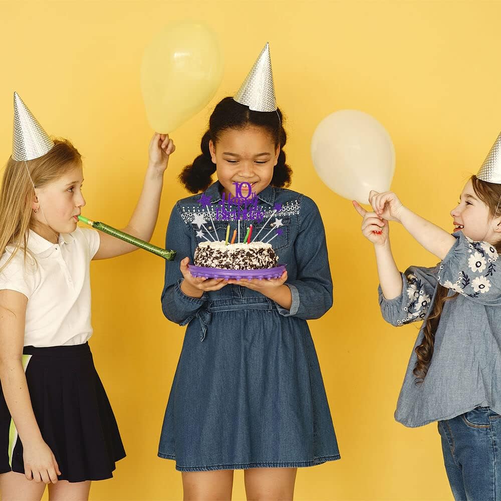 Glittery 10th Happy Birthday Cake Topper with Star,Personalised 10 Birthday Cake Toppers Party Decorations Party Supplies for Boys Girls Purple Silver