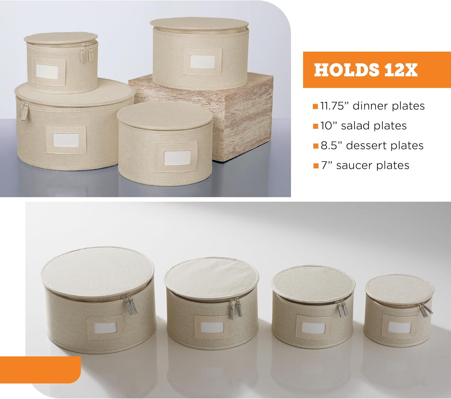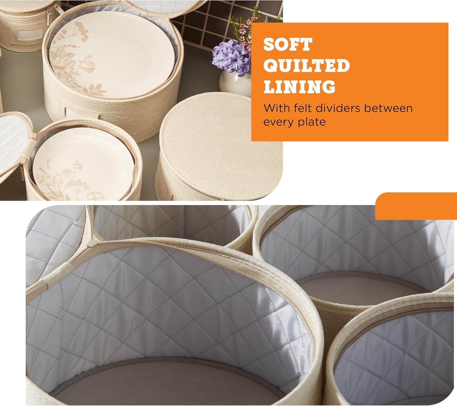 storageLAB China Storage Containers, Hard Shell Case with Felt Dividers for Charger Plates, and Dishes, Ideal for Kitchen Organization, Moving Supplies, and Fine China Storage - 4-Piece Set, Cream