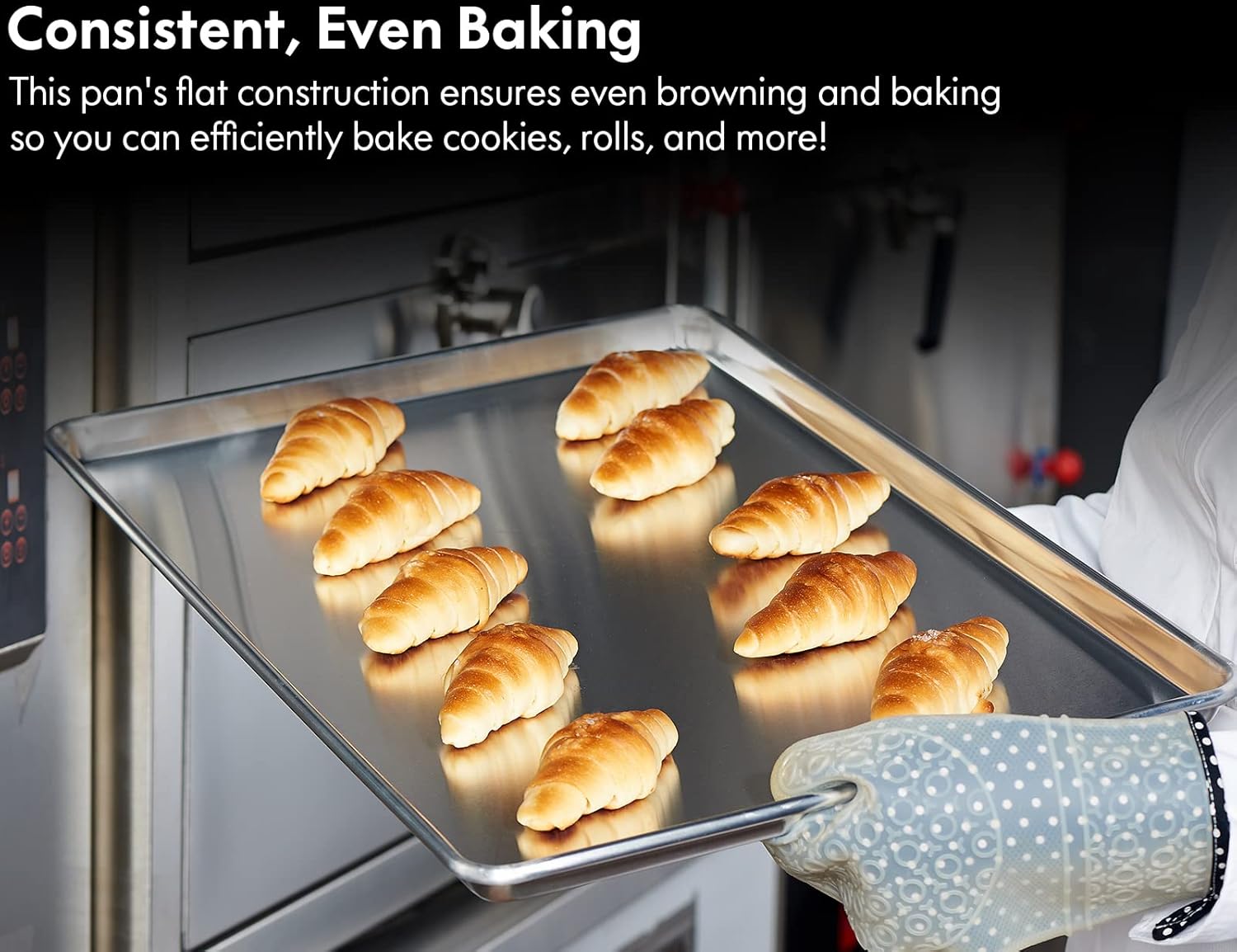 CURTA 6 Pack Aluminum Sheet Pan, NSF Listed Full Size 26 x 18 inch Commercial Bakery Cake Bun Pan, Baking Tray