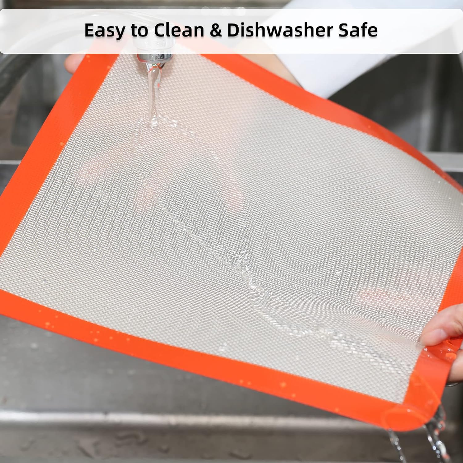 - 【SMOOTH SURFACE, TOUGH AND TENSILE INTERIOR】These non-stick silicone square baking mats 12 Inch are easy to use whether you are highly skilled in baking or not. With smooth, shiny surface, you will find the cleanup a breeze afterwards. Just simply rinse off in warm soapy water. To maximize time saving, dishwasher is also a good alternative. On the other hand, with tough and tensile interior, they’re very durable which helps you save money imperceptibly day by day.