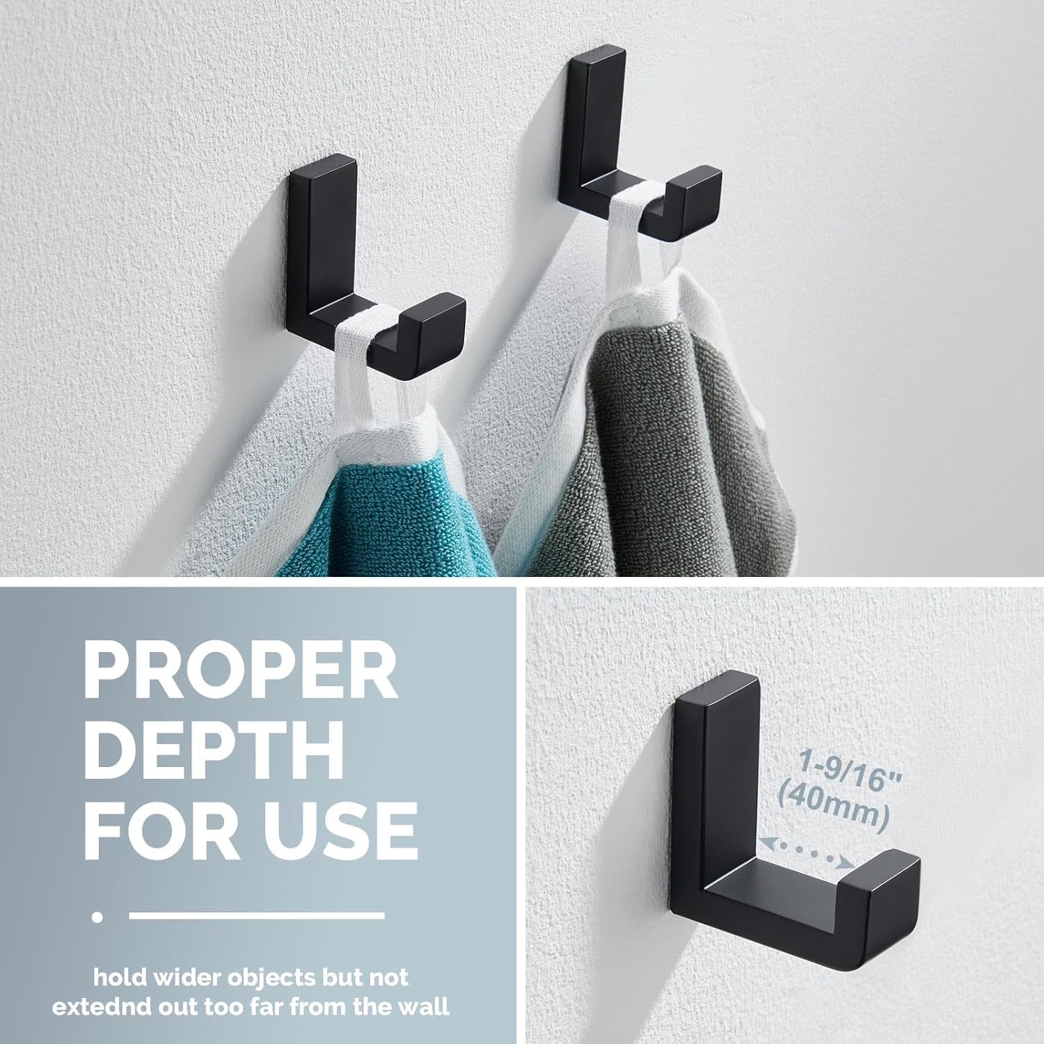 Angle Simple Towel Hook Matte Black 2 Pack, 304 Stainless Steel Bathroom Coat Robe Hook for Wall