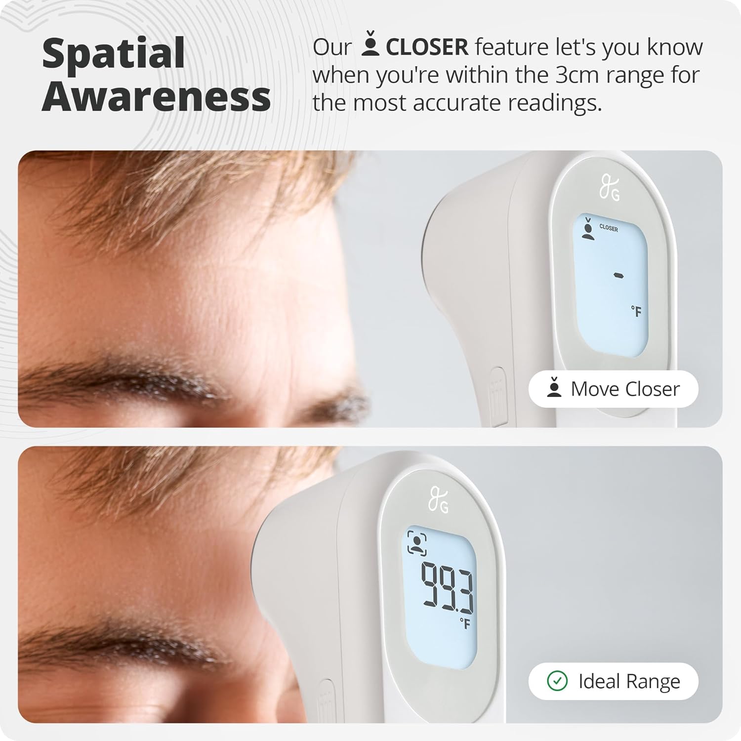 Greater Goods No-Touch Infrared Digital Thermometer for Adults, Kids, and Babies, Forehead Thermometer with Ergonomic Grip, Fever Alarm, White