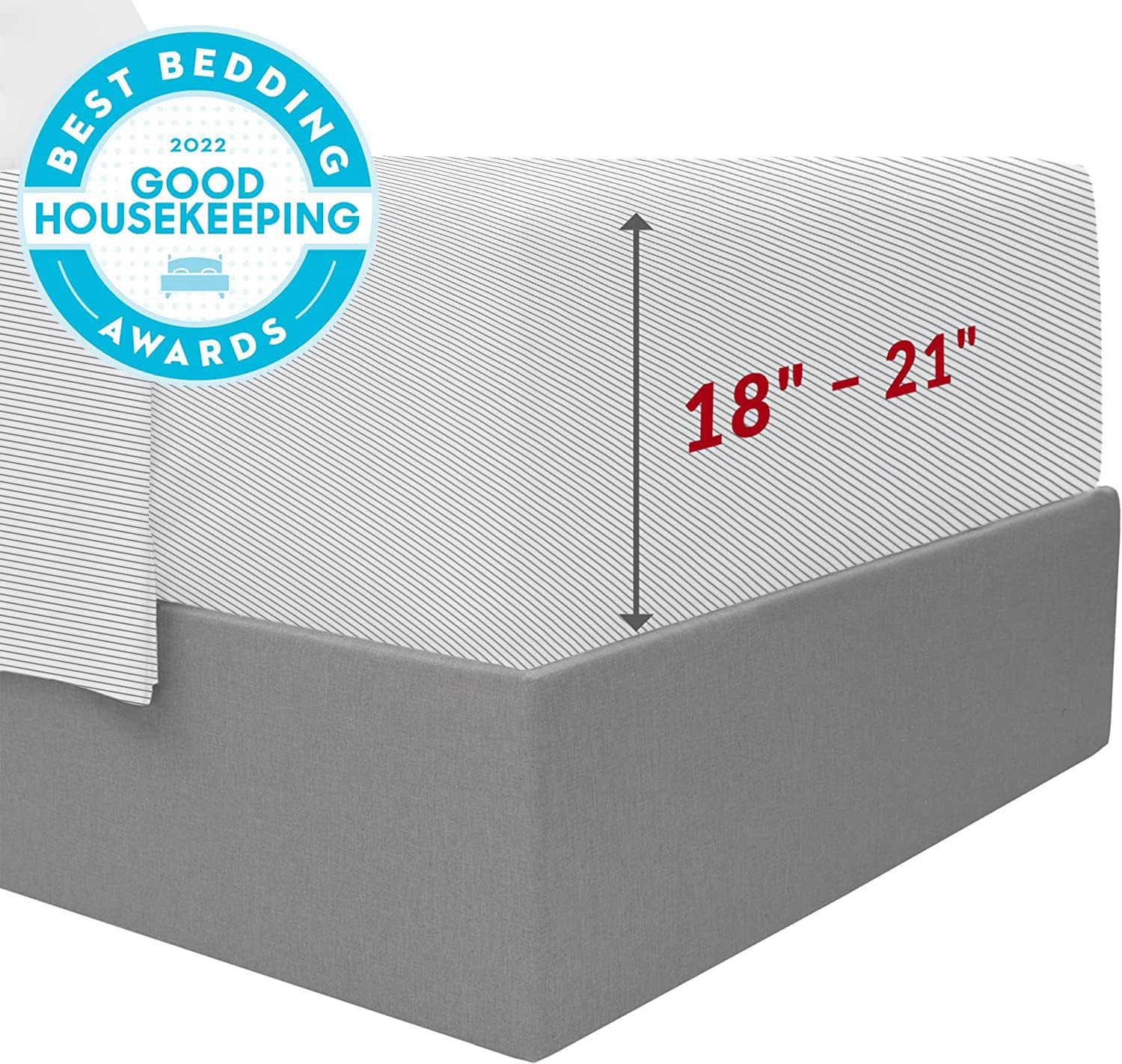 - Perfect Fit & Certified Safe - Deep pockets fit mattresses up to 21" deep, making them ideal for memory foam toppers, air mattresses, and more. A sewn-in elastic band ensures a snug, secure fit. OEKO-TEX(R) STANDARD 100 certified (22.HUS.40891, Hohenstein), tested for over 1,000 harmful substances for your peace of mind.