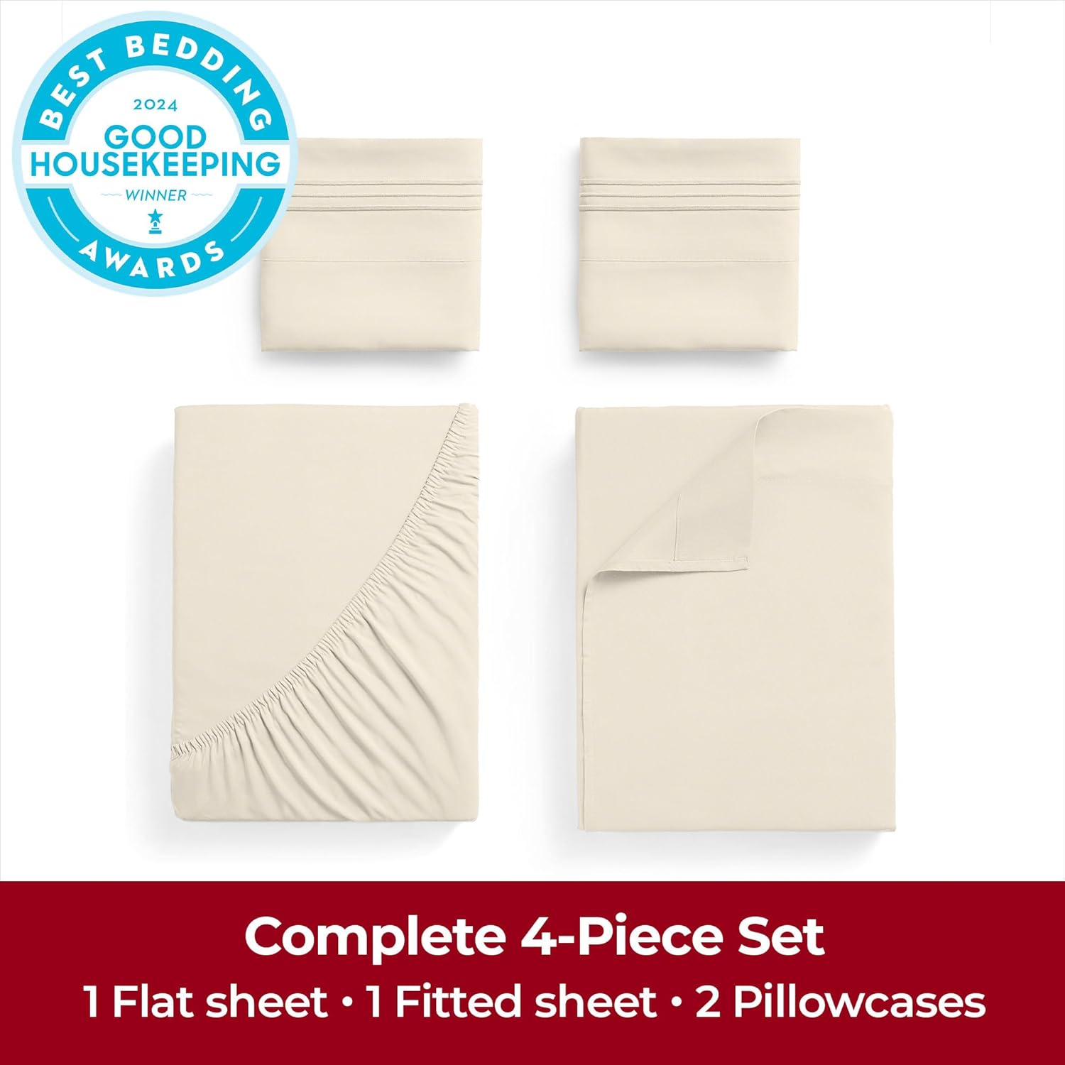 Mellanni Extra Deep King Sheets - 4 PC Iconic Collection Bedding - Hotel Luxury, Ultra Soft, Cooling Bed Sheets - Wrinkle, Fade, Stain Resistant (King, Golden Ivory)