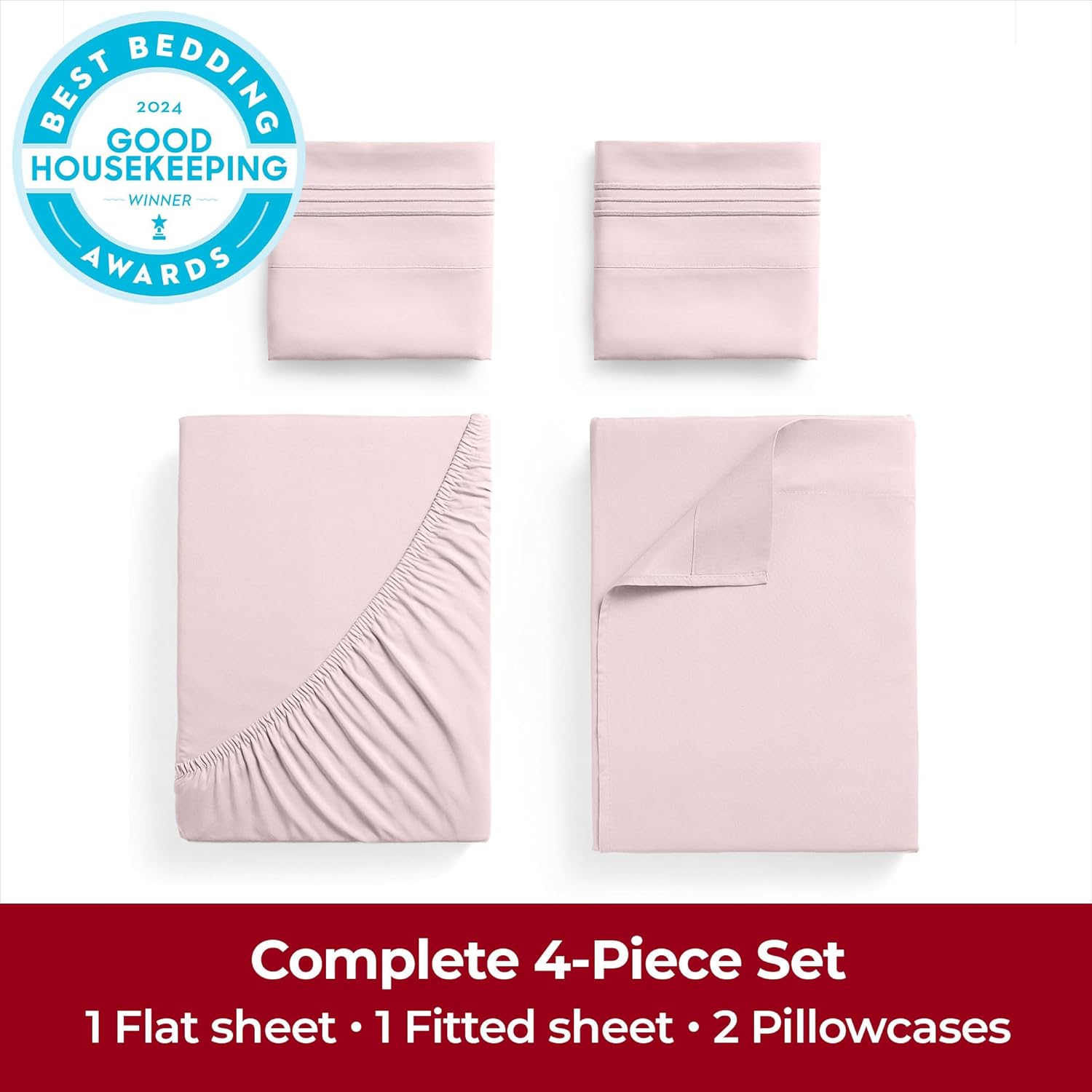 Mellanni Extra Deep Queen Sheets - 4 PC Iconic Collection Bedding - Hotel Luxury, Ultra Soft, Cooling Bed Sheets - Wrinkle, Fade, Stain Resistant (Queen, Blush Pink)