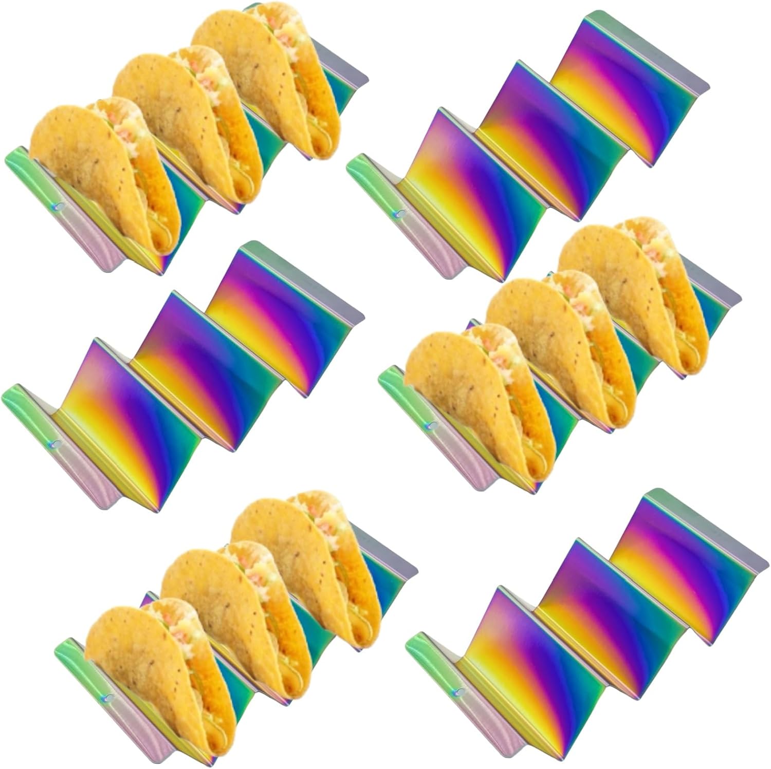 - High Quality Material: These rainbow taco holder set made of premium quality stainless steel. They are durable, rust prevention, break resistant and easy to clean, Dishwasher Safe.