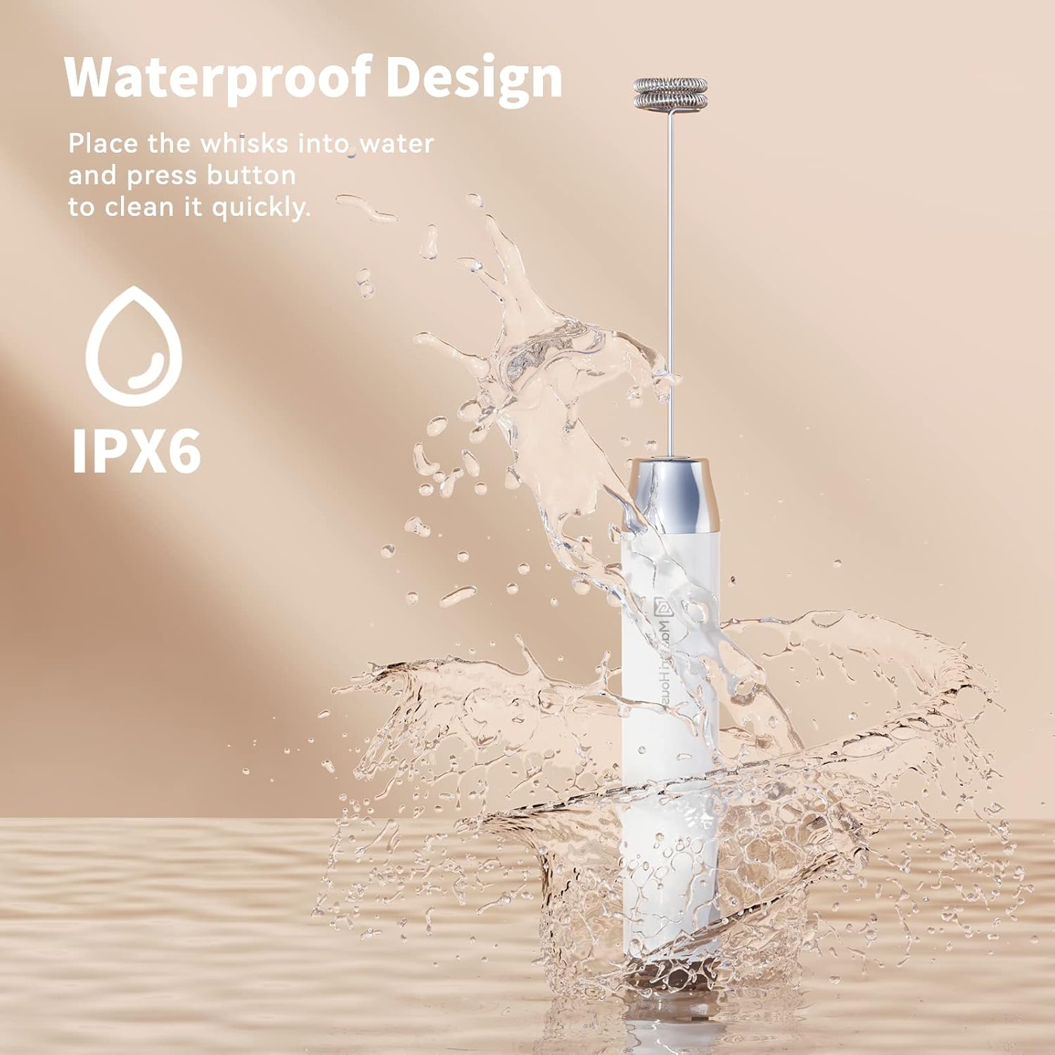 Maestri House Rechargeable Milk Frother with Stand, LunaFro Handheld Electric Foam Maker Waterproof Detachable Stainless Steel Whisk Drink Mixer Foamer for Lattes, Cappuccino