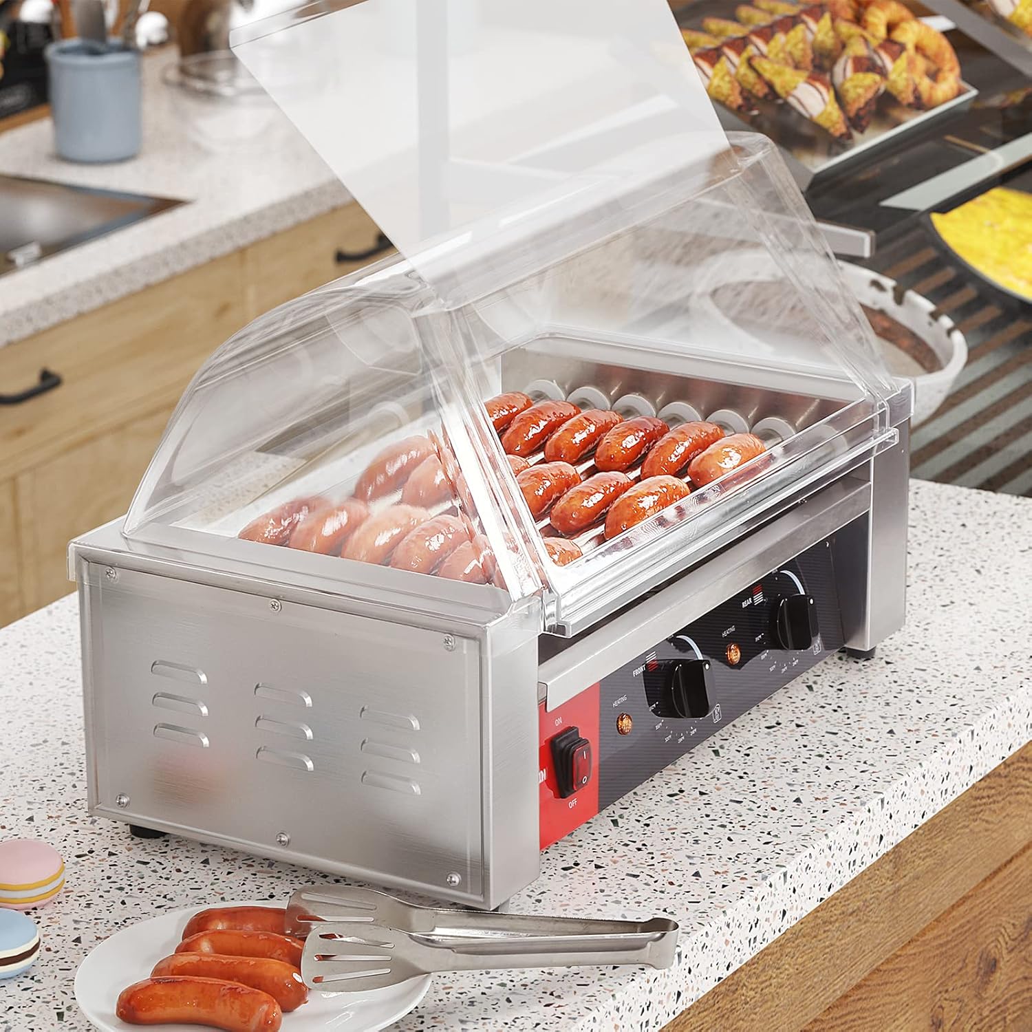 - Thorough & Even Cooking: 7 non-stick 304 stainless steel rollers hold up to 18 hot dogs and rotate a full 360 degrees to cook all items uniformly. Whether cooking franks, thick stadium dogs, plump bratwurst, or even frozen hot dogs, these rollers can do it all, quickly and efficiently.