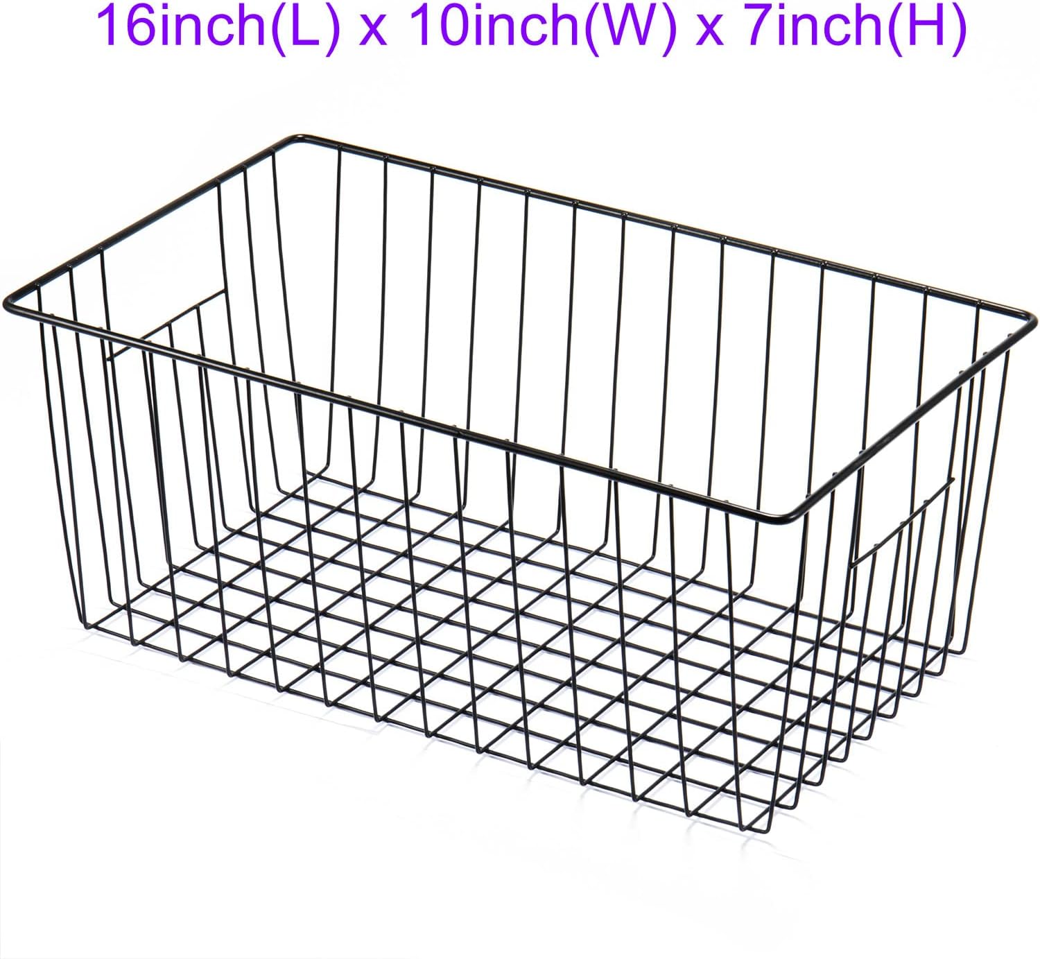16inch Freezer Wire Storage Organizer Baskets, Household Refrigerator Bins with Built-in Handles for Cabinet, Pantry