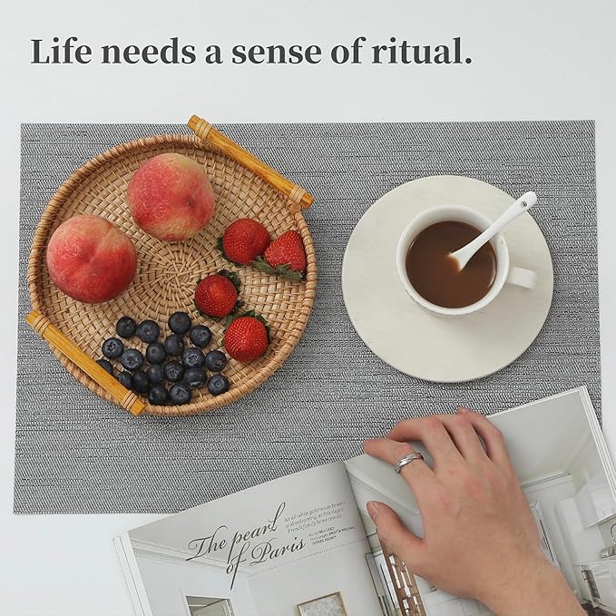 - Elegant and Practical Design: With a luxurious vinyl woven texture, precision cutting, and heat-trimmed edges, our double-sided placemats offer a sophisticated and practical solution. They provide a non-slip surface, resist fading, and are easy to clean, elevating your dining experience.