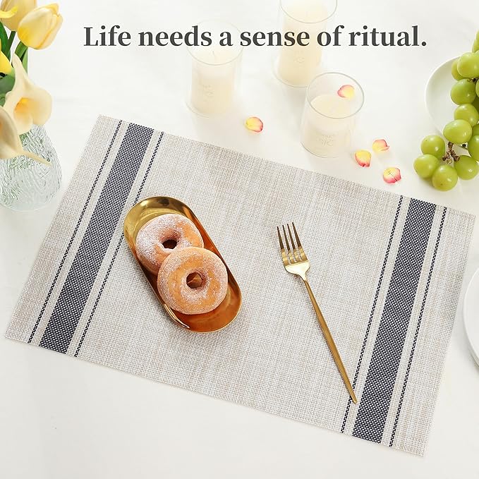 - Elegant and Practical Design: With a luxurious vinyl woven texture, precision cutting, and heat-trimmed edges, our double-sided placemats offer a sophisticated and practical solution. They provide a non-slip surface, resist fading, and are easy to clean, elevating your dining experience.