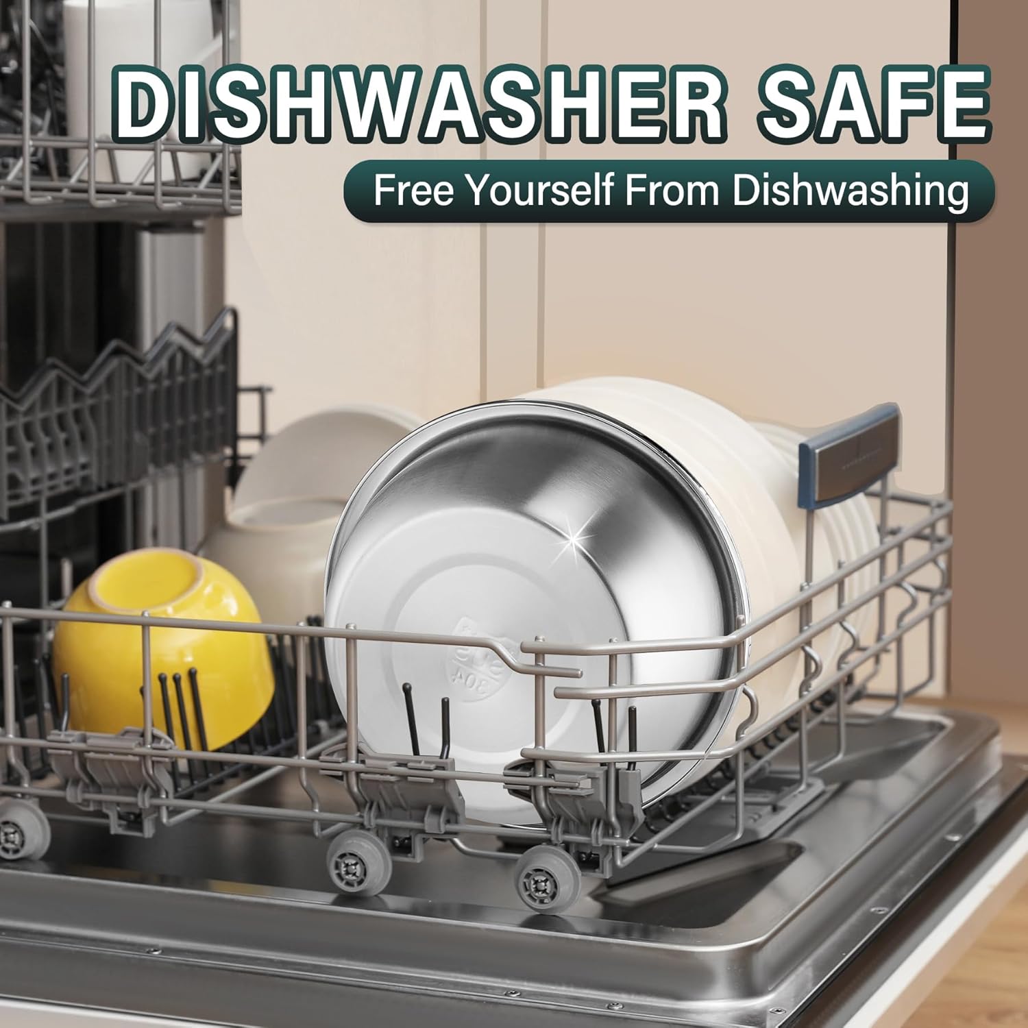 - Colander set is made of 304 stanless steel, which is safe, healthy and durable for every day use. It won't retain odors like some plastics. The edges of the colander & bowl are nicely rounded over and inner wall adopts mirror polishing technology, which is smooth,bright and easy to clean. Both are dishwasher safe.