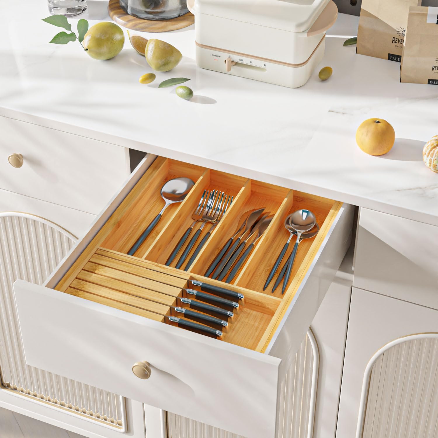 - 【100% High-Quality Bamboo Material】: The silverware drawer organizer has a smooth surface, strong and firm seams, and is easy to clean.