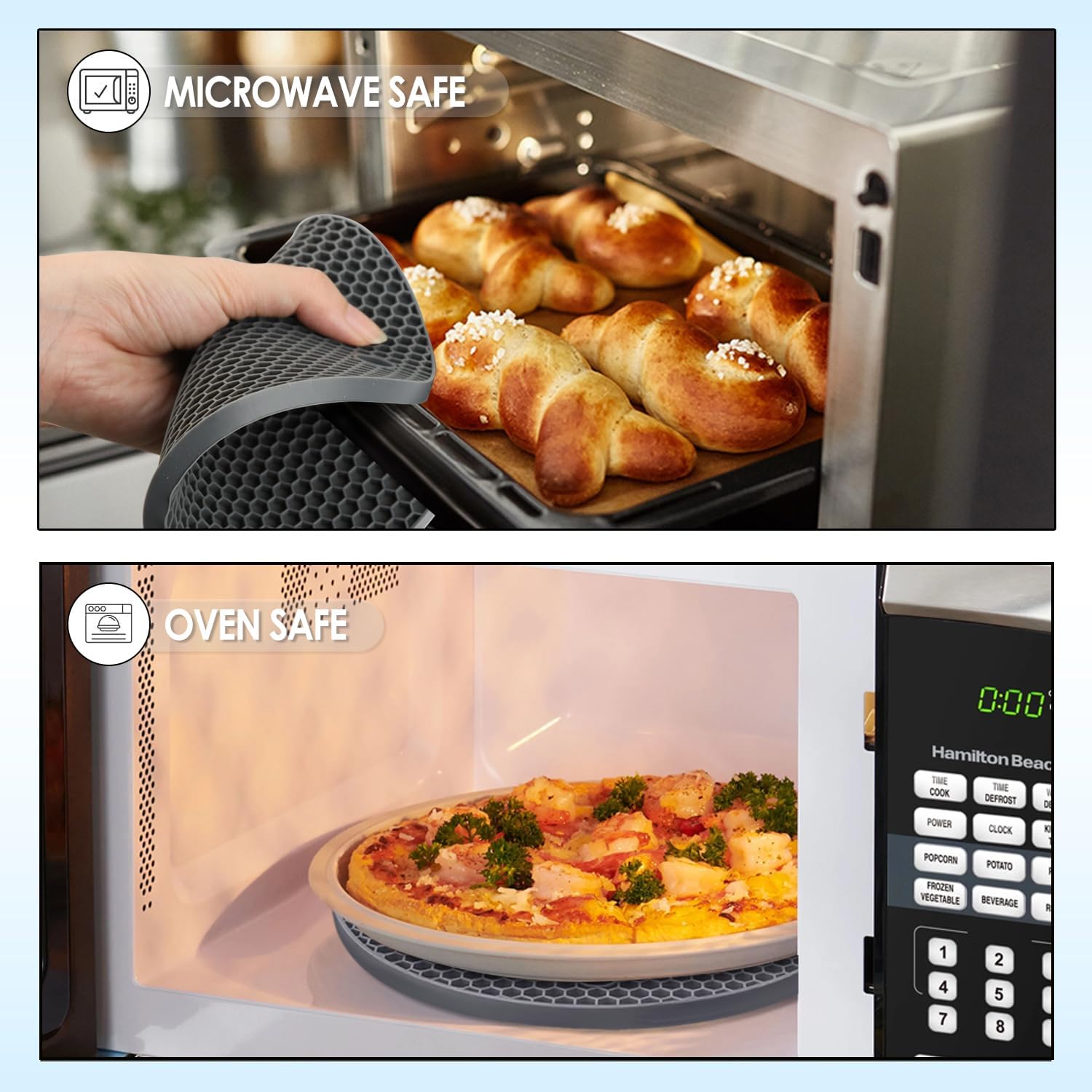 - 🎯【MULTI FUNCTION】-The silicone mat not only can be heat resistant counter mats, but also can be kitchen potholders for jar opener, trivets for hot dishes, hot pads for pots, non slip coasters, bowls mat, teapot mat, hot pot holder, hot mitts, spoon rest, dish drying mat or anywhere you need extra grip or extreme heat or cold protection.