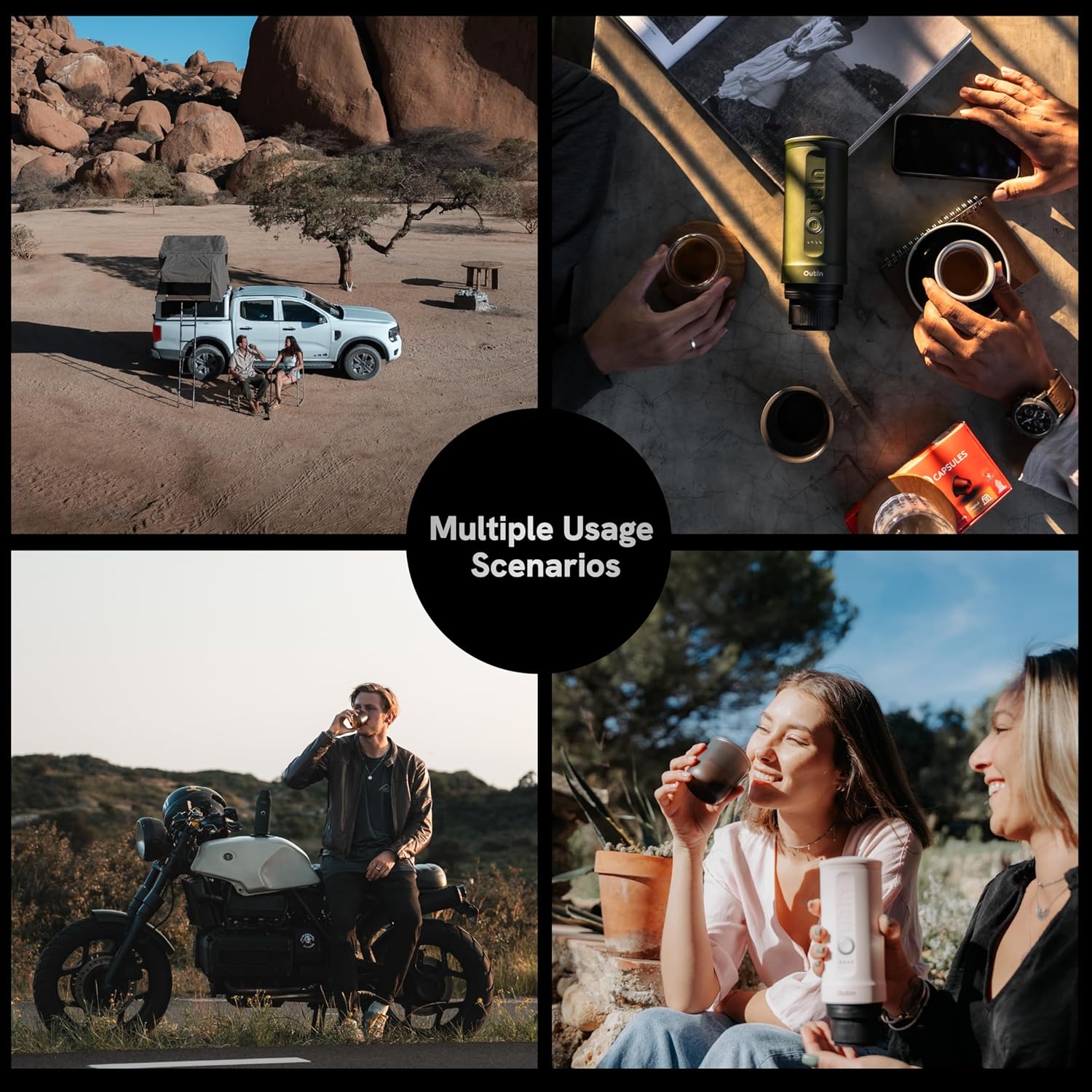 - 【2-in-1 BREWER & ONE-BUTTON CLICK】: Compatible with both Ground Coffee & Capsule, the camping coffee maker has been tested with hundreds of designs to ensure ease of use. With just ONE-BUTTON CLICK, you can enjoy perfect espresso in just 3-4 minutes.
