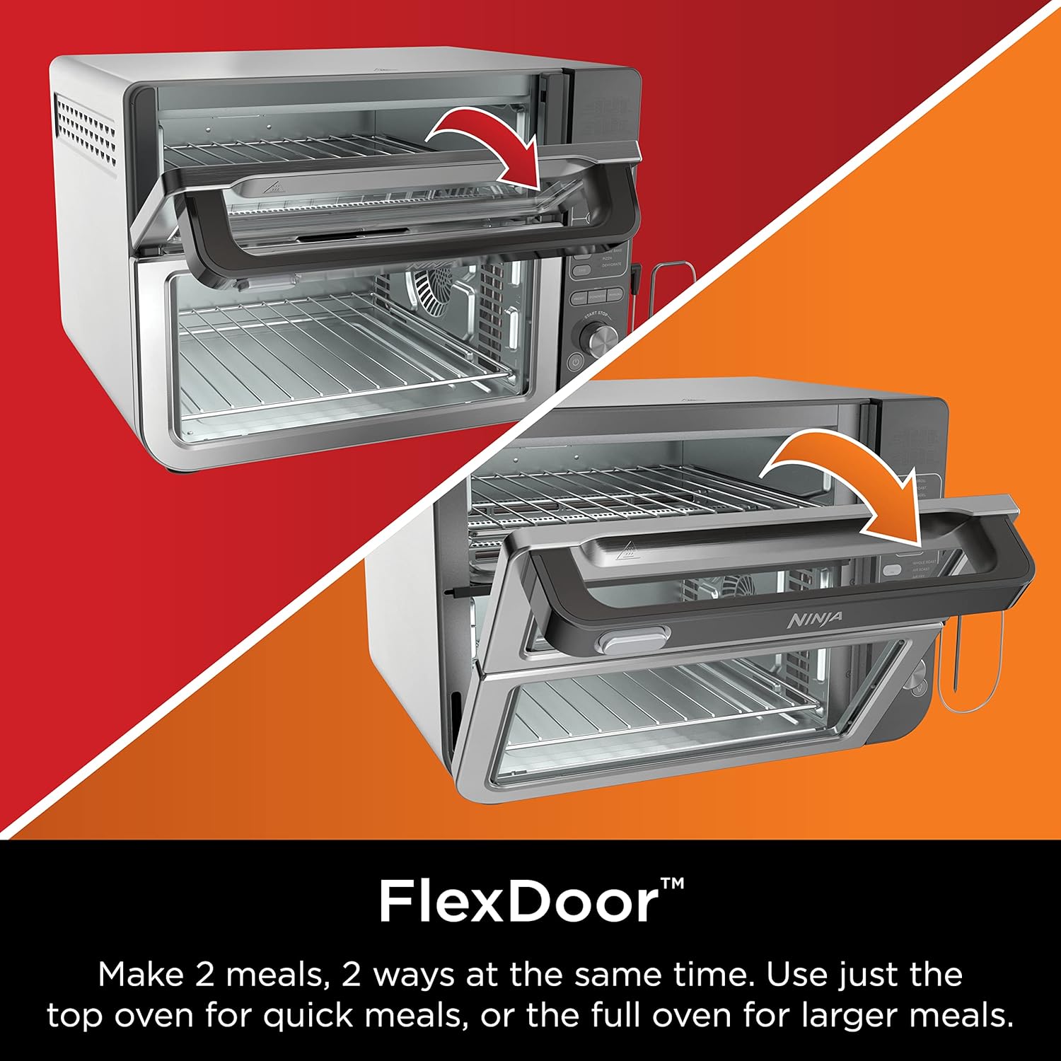 Ninja DCT451 12-in-1 Smart Double Oven with FlexDoor, Thermometer, FlavorSeal, Smart Finish, Rapid Top Convection and Air Fry Bottom , Stainless Steel