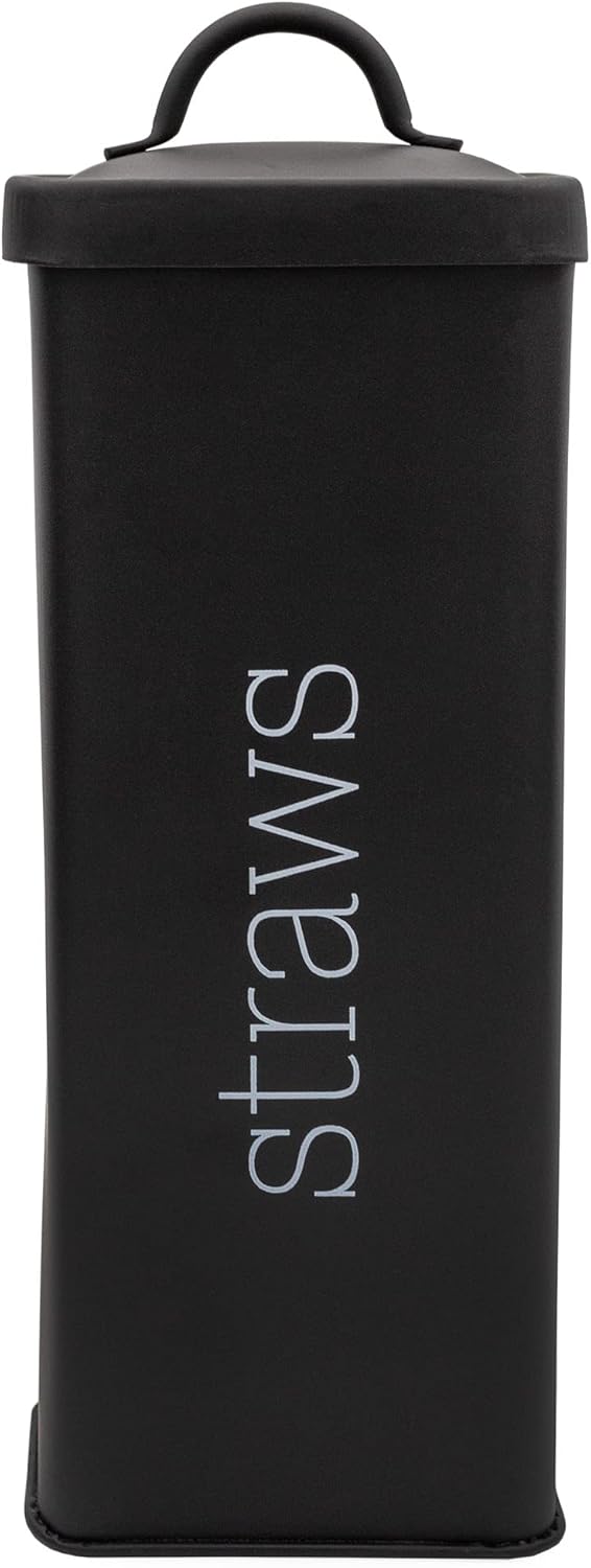 AuldHome Design Farmhouse Enamelware Straw Holder (Black); Retro Metal Straw Storage Canister