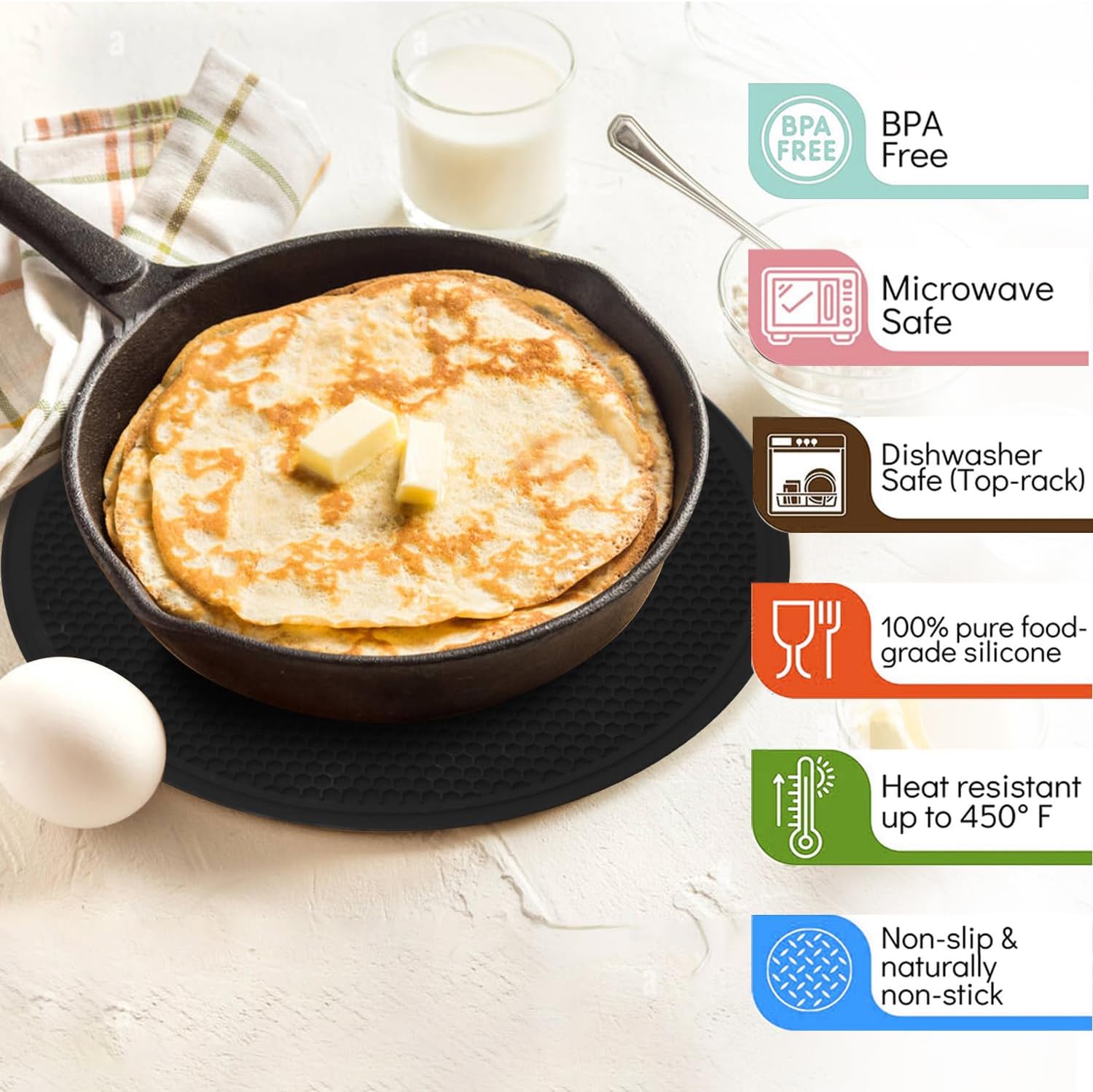 - š„ćBETTER CIRCULATIONć: Our microwave mat has 2mm anti-slip Texture that helps dissipate heat faster. Features raised edge to help effortlessly lift hot bowls and plates while protecting from heat. These silicone trivet mats are heat protection and insulated as a protector for countertops. Heat-resistant temperature from -40°F-446°F(-40°C to 230°C), safe for use in the oven, freezer, microwave, and as a pot holder, trivet, jar opener, spoon rest or anywhere you need extra grip or extreme heat.
