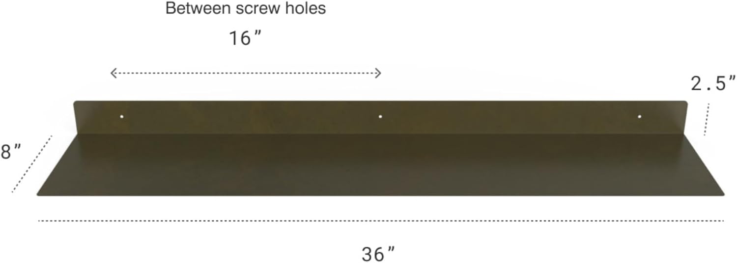 - DIMENSIONS & DETAILS: Measuring 36-inches long x 8-inches in depth, our steel floating shelf is made from 14 gauge raw steel. The weight of the shelf is 8 LBS. It's perfect for displaying books, plants, bottles, picture ledges, and retail displays
