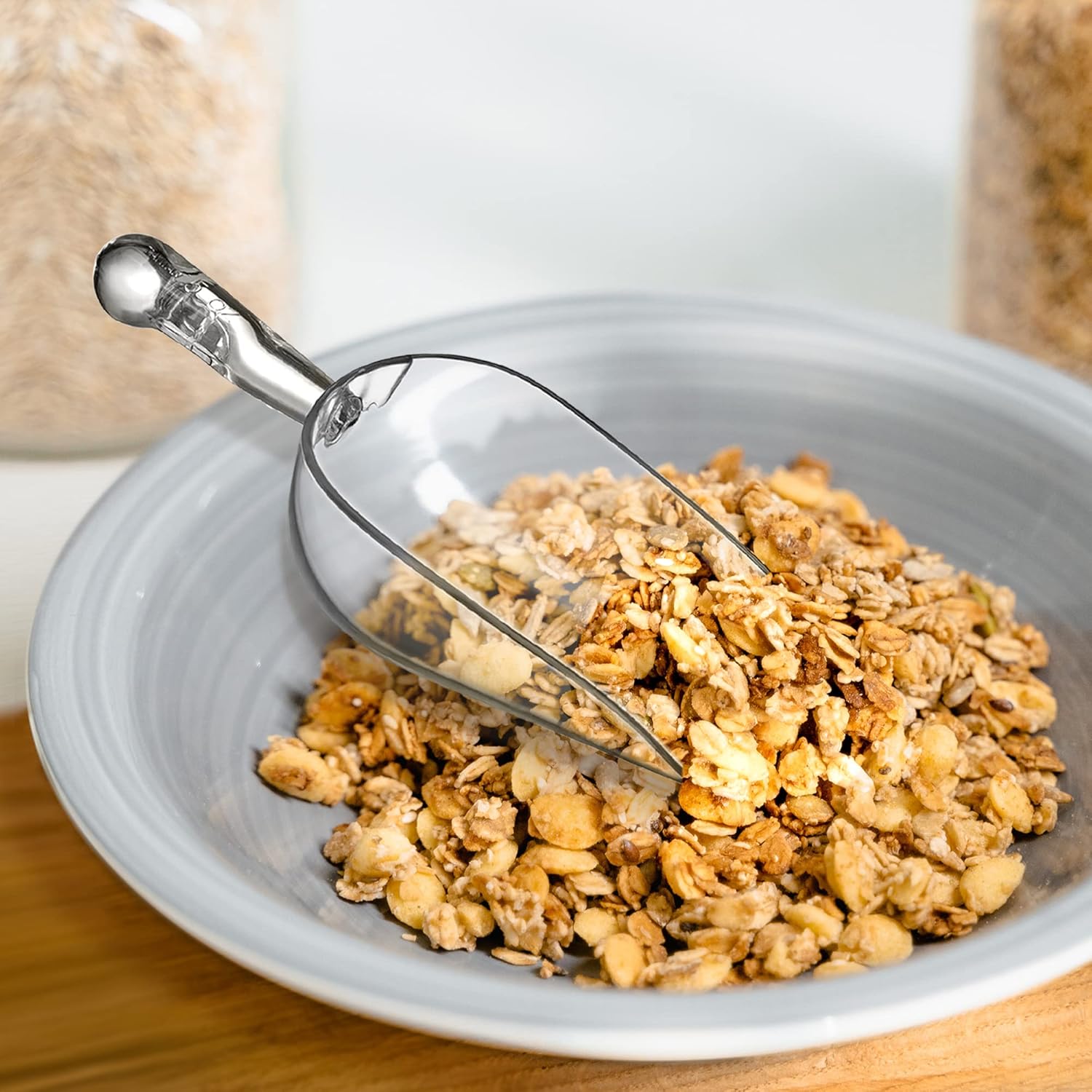 - [MULTIPLE USES] The scoop is good for vairous uses: ice cubes, beans, flour, baking ingredients, cereal, dry goods, pet food, bath salts, and more. A handy tool for your kitchen, bathroom, and laundry room.