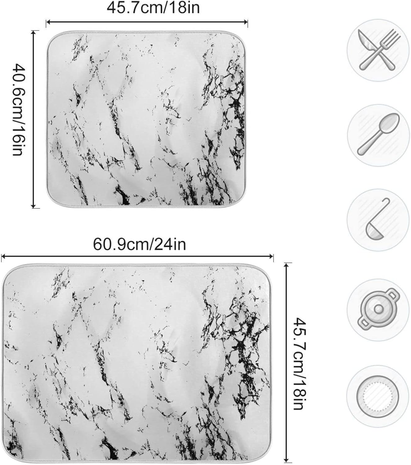 Super Absorbent Dish Drying Mat, Microfiber Fast-Drying Dish Mat, 24" x 18", Kitchen Dish Drying Pad, White Marble