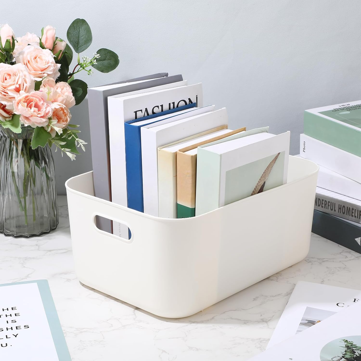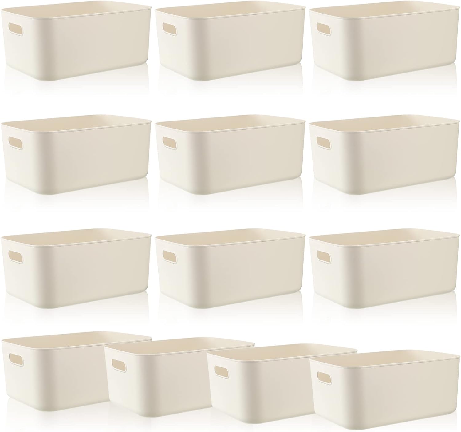 - Multipurpose Storage Bin Set: you will receive 10 pieces of white plastic storage bins with handles, the ample quantity can certainly meet your daily storage requirements and classification needs, which can hold a lot of things, maximizing your space and making your home tidier and cleaner