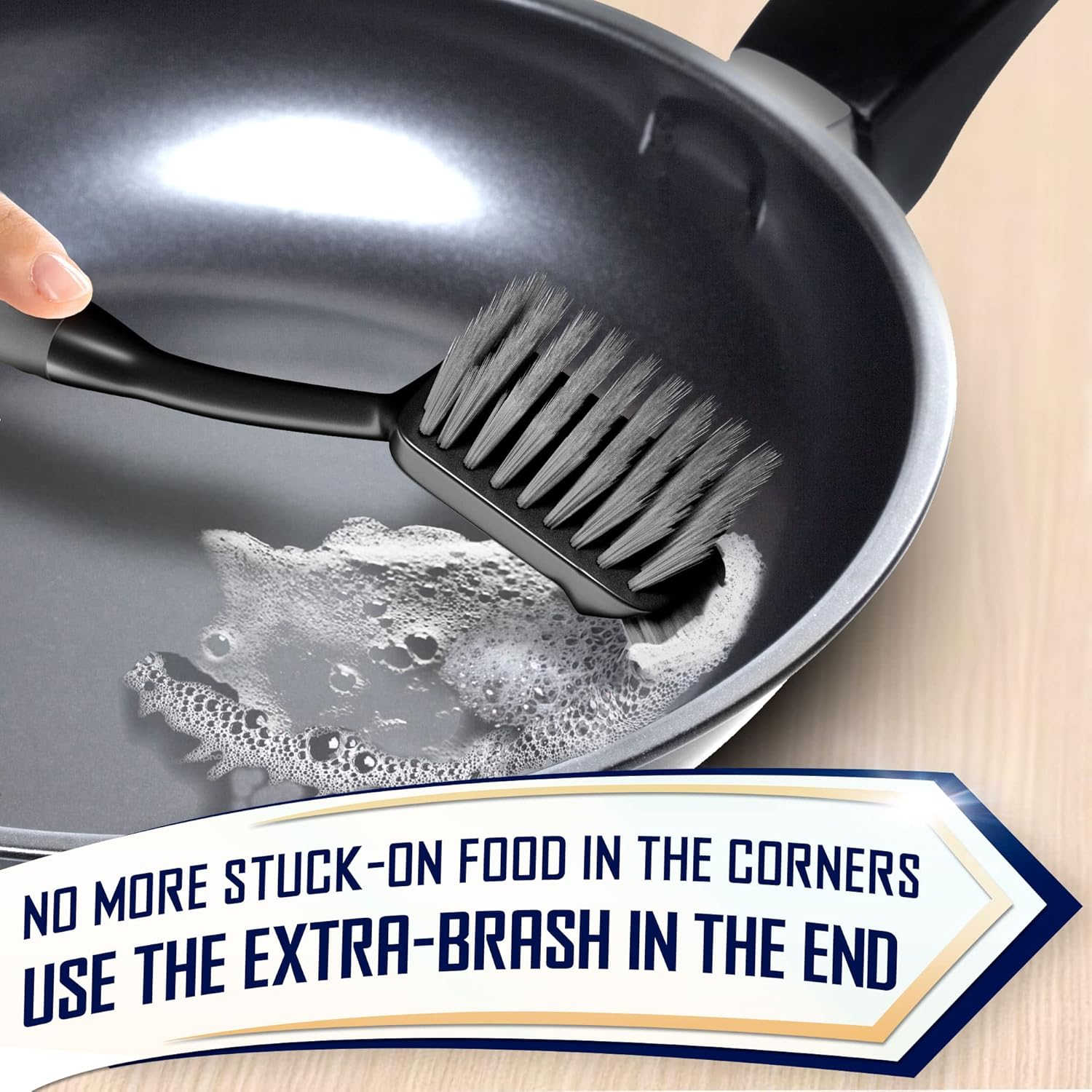 - Heavy-duty bristles - dense and thick bristles easily get off stubborn stuck-on food bits from your pans, pots, and more. Do not bend, deform, or fall out after the week of use.