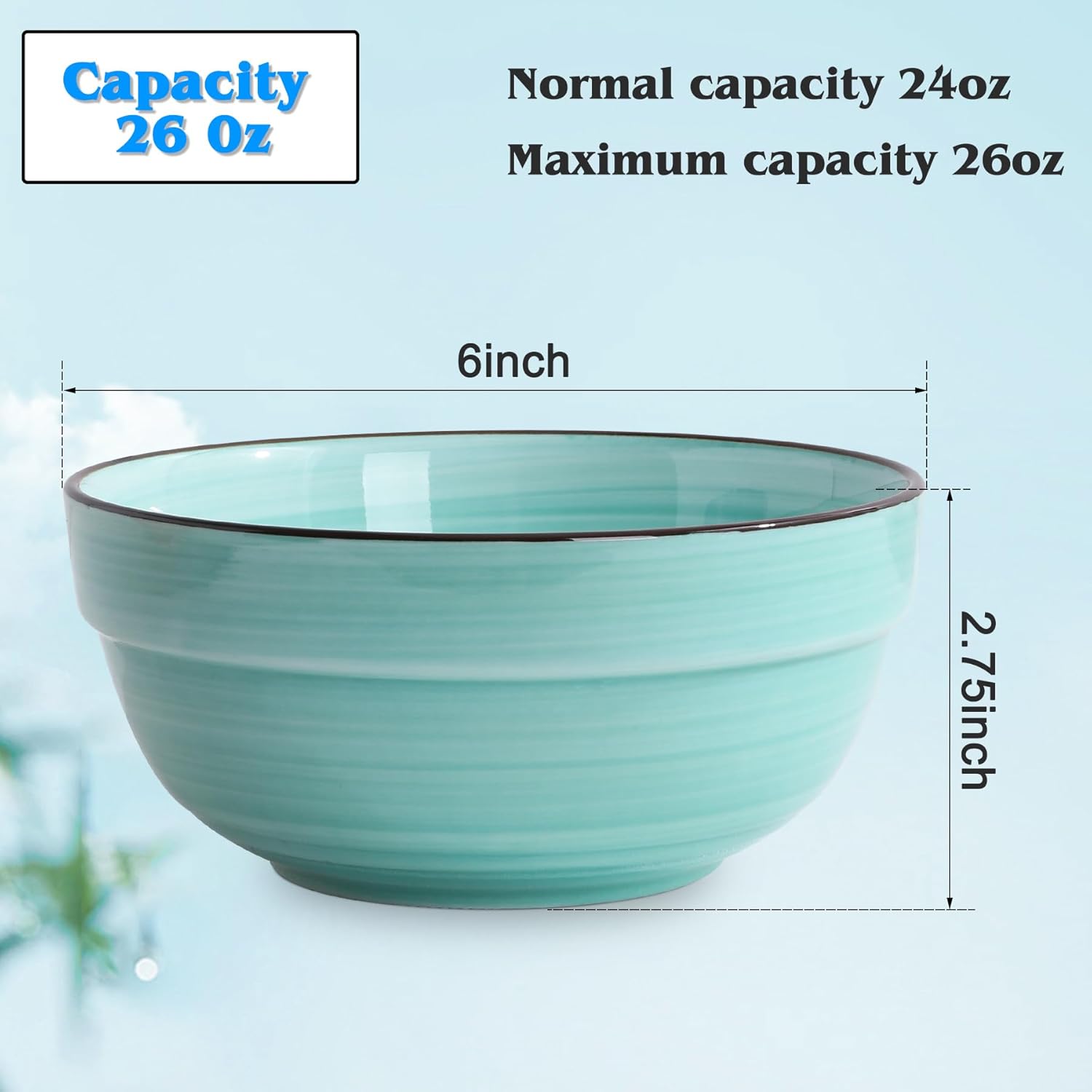 - Perfect Capacity& Multifunctional: This cereal bowl measures 6” Dia x 2.6” H and maximum capacity is 24 ounce, it is the perfect size for cereal, oatmeal, salad, fruit, ice cream, nut, dessert, rice, soup, instant noodles and even pasta.