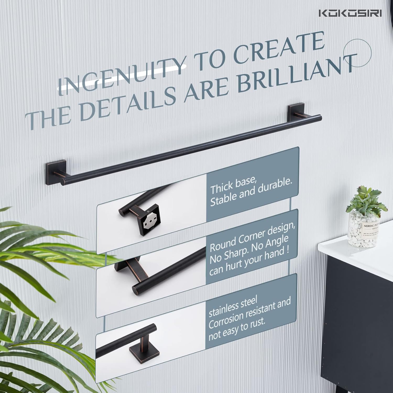 - ◄ Rustproof ► KOKOSIRI towel bar made of SUS 304 Stainless Steel (premium stainless steel). All metal design and used of high-grade steel which can resist rust and corrosion. For your health, all the materials we use are the highest quality and harmless. You can rest assured to use all of our products