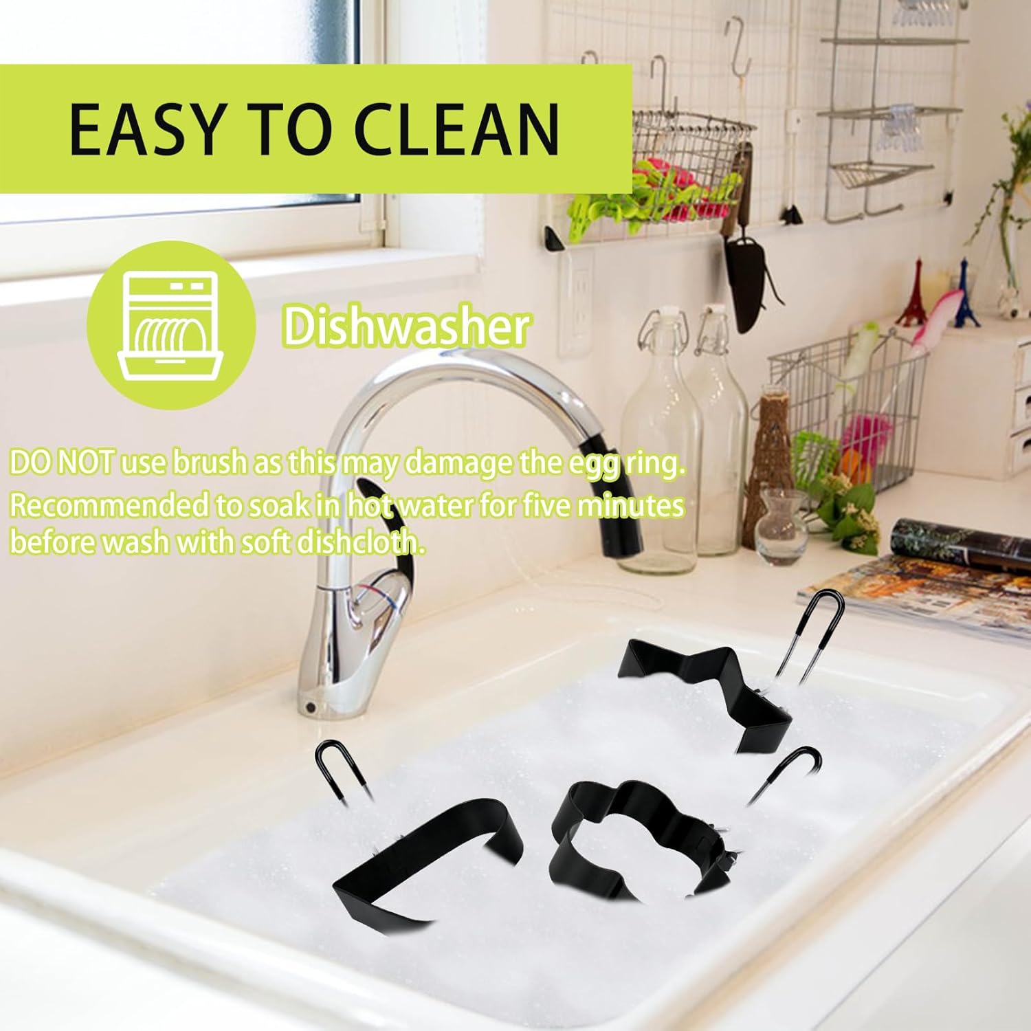 - 【Easy To Clean】Our metal egg ring mold can be cleaned by dishwasher or handwashing, recommended to soak in hot water for five minutes before wash with soft dishcloth, DO NOT use rough brush as this may damage the egg ring. These egg rings pancake molds are perfect for children who are learning to cook, makes cooking eggs easy.