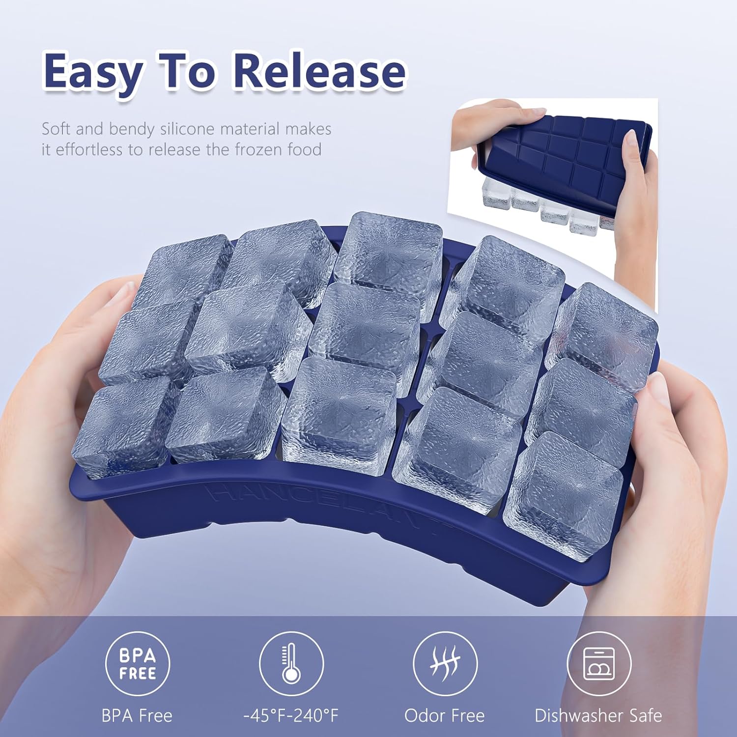 - Food Grade Silicone Ice Cube Tray: Our silicone ice cube trays are made of food grade silicone which is BPA free durable safety and odorless, they can directly contact food, for drink & food making and can be used for dishwasher, refrigerator, freezer and microwave