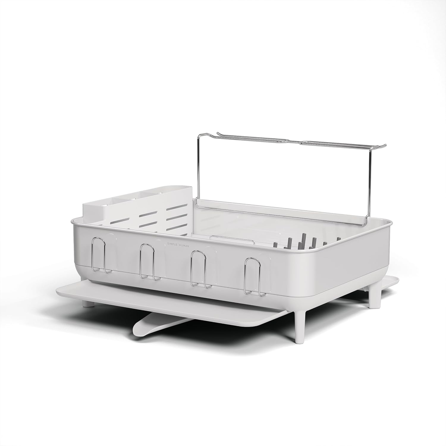 simplehuman Large Capacity Dish Drying Rack with Stainless Steel Frame, 360º Easy Drain Swivel Spout, Utensil & Wine Glass Holder, Anti-Residue Coating, Moisture Control Surface, White