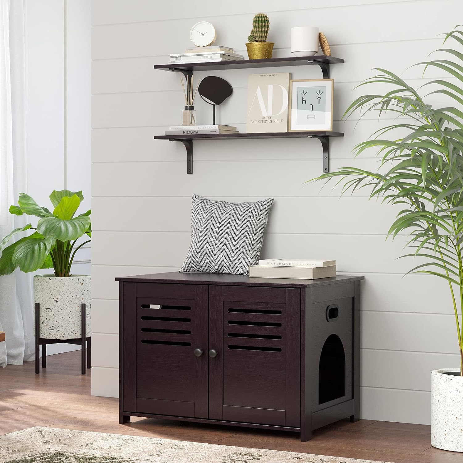 DINZI LVJ Long Wall Shelves, 31.5 Inch Wall Mounted Shelves Set of 2, Easy-to-Install, Floating Storage Ledges with Sturdy Metal Brackets for Living Room, Bathroom, Bedroom, Kitchen, Espresso