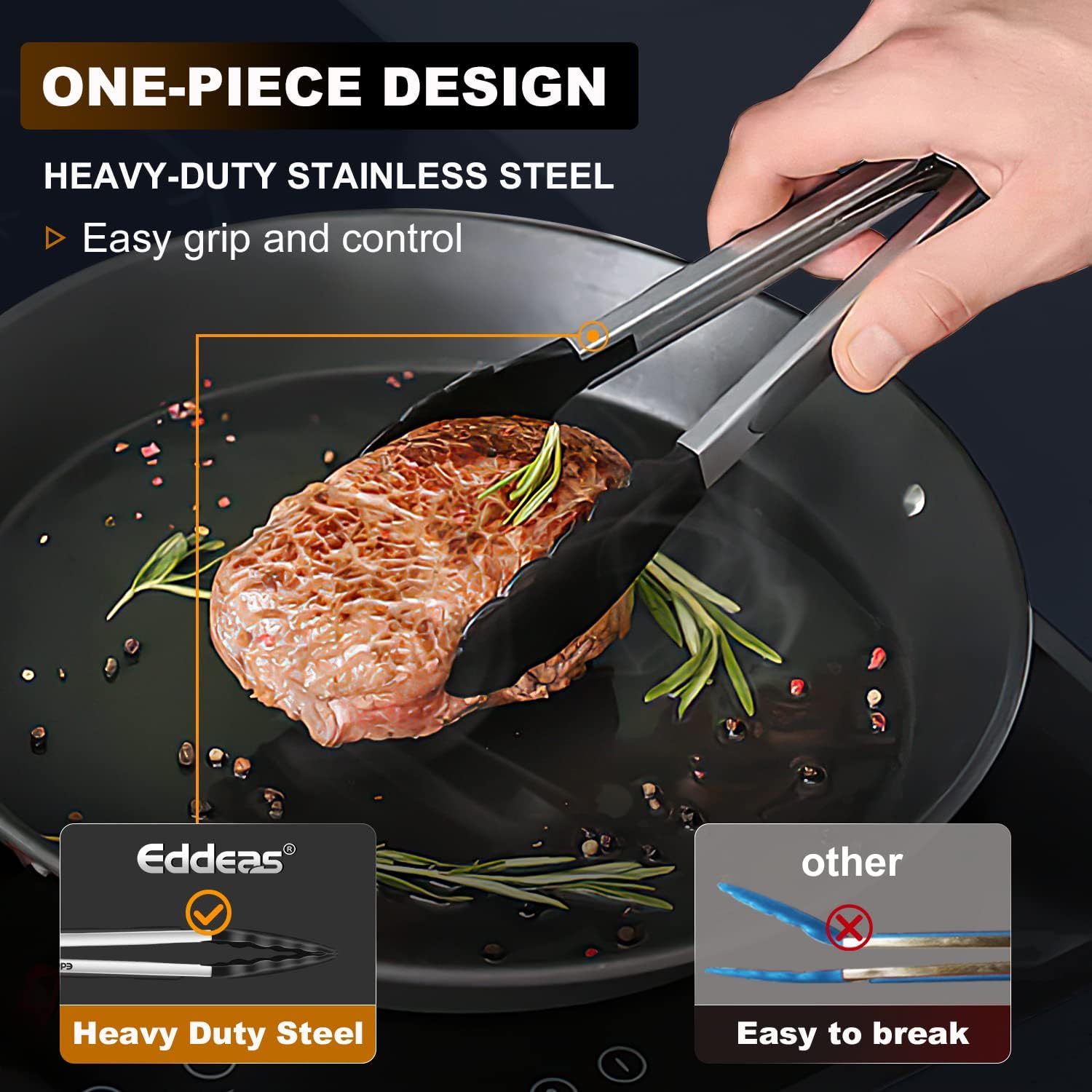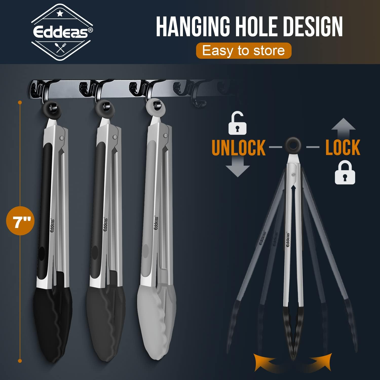 - CHEF QUALITY STAINLESS STEEL - EDDEAS mini silicone tongs are made from a thick stainless steel for unbeatable strength and premium construction, and feature a ring-pull locking system which is made to last.