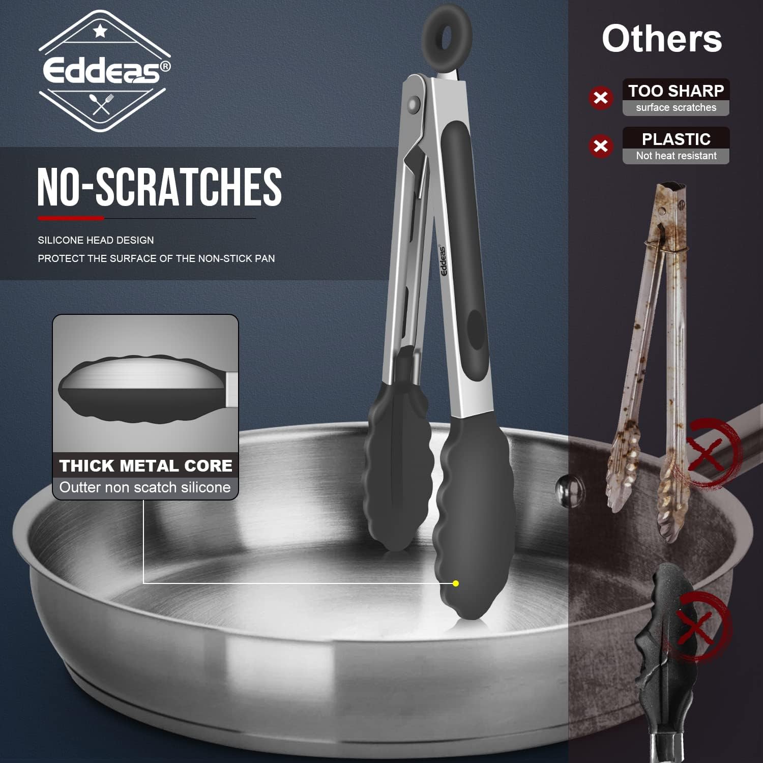 - NON-STICK, HEAT-RESISTANCE AND DISHWASHER-SAFE - EDDEAS 7inch small serving tongs are manufactured from a premium Food Grade Silicone, that won't scratch your non-stick pans or grill grates, dishwasher safe and heat safe up to 480°F / 249°C