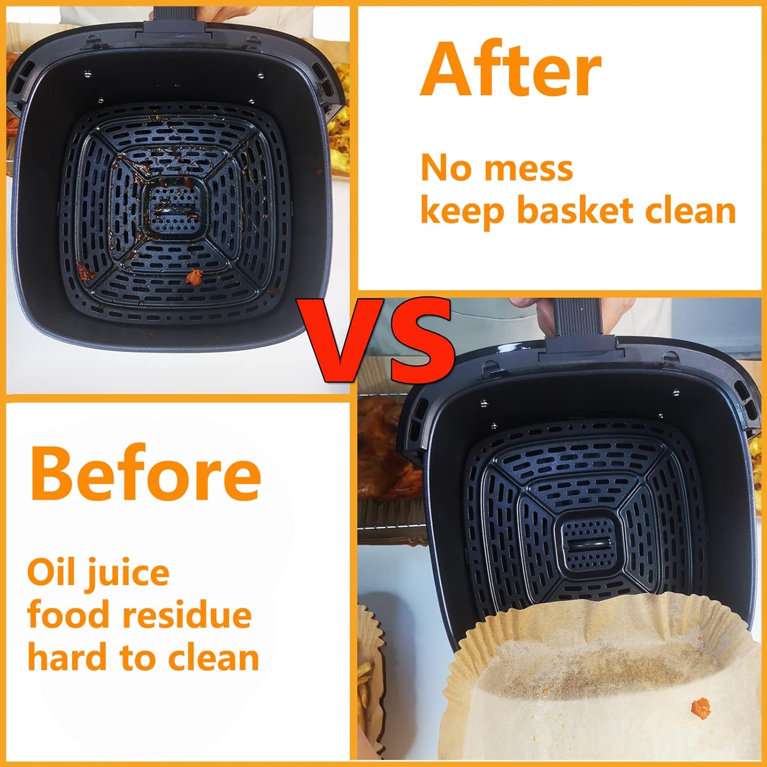 - ♡Will you operate? Our airfryer parchment liners doesn't need to tear, cut, or think about how to wrap the food, just take one out, put your food on it and put it in your air fryer. It can keep the original taste of food intact, and you don't have to worry about sticking! Simple operation can eat delicious food!