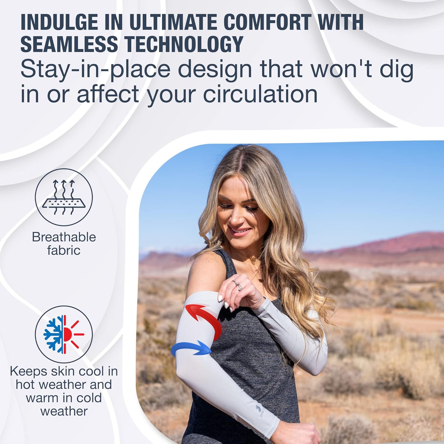 - Superior UPF 50+ premium arm sleeves – our innovative UV sleeves for men and women block over 98% of the sun’s harmful UVA and UVB rays, offering full UPF 50+ coverage. These sun sleeves for men and women are ideal for shielding yourself from the sun on hot days – whether you’re playing golf, basketball, baseball, volleyball, running, or cycling.