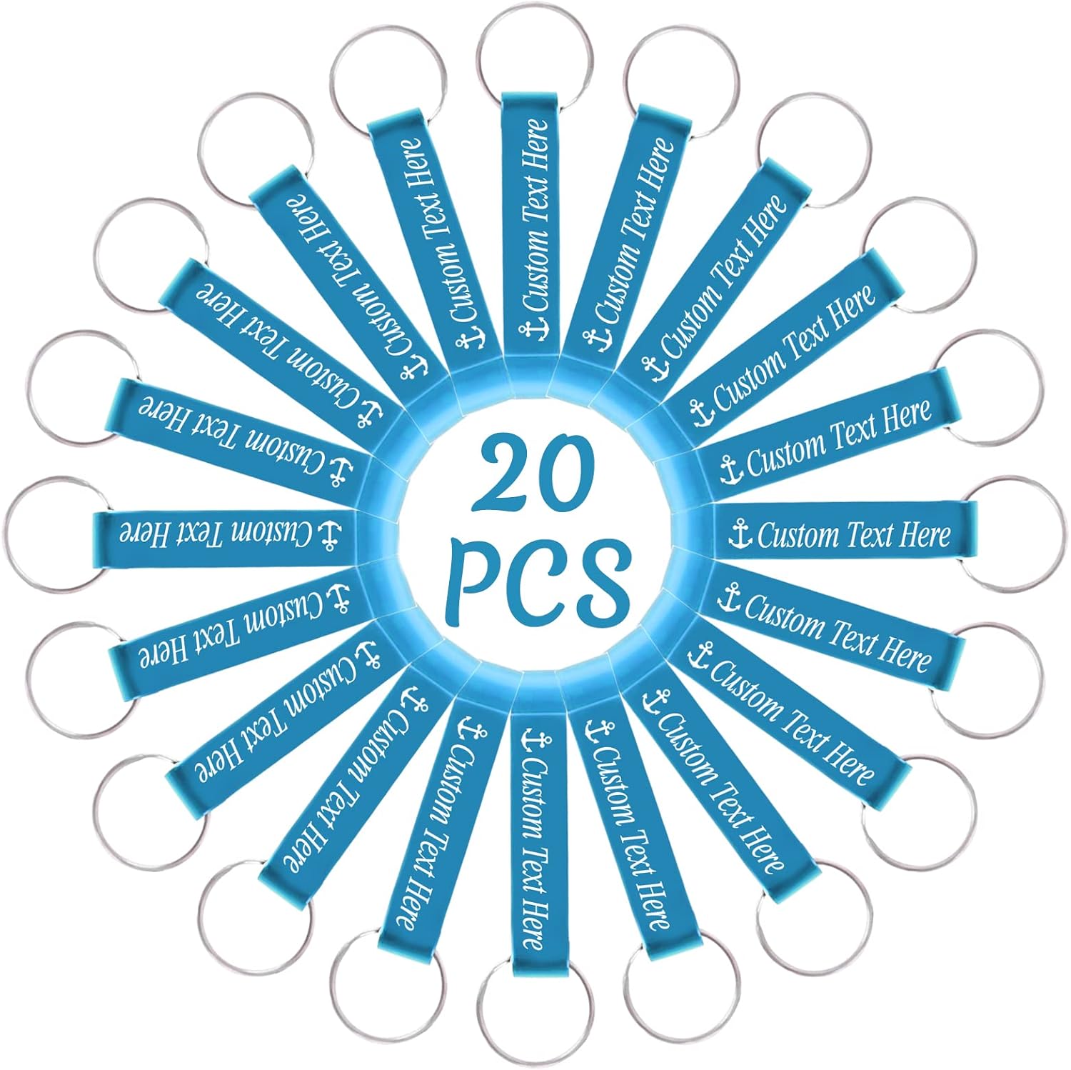 20PCS Personalized Bottle Opener Keychain Bulk Custom Beer Bottle Opener with Logo Text Engraved Wedding Bottle Opener Favors Customized Gifts for Guests Baby Shower Birthday Party-Sky Blue
