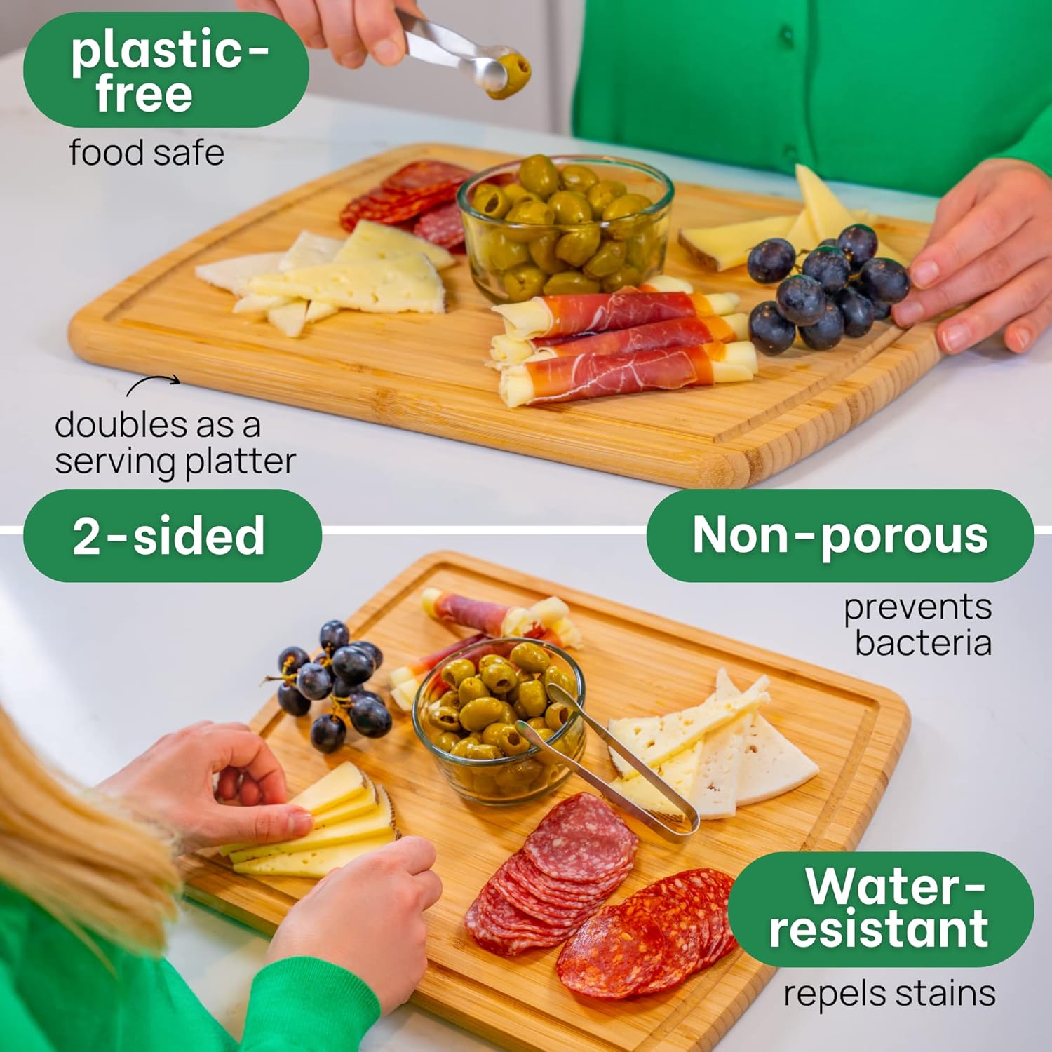 GREENER CHEF 15 Inch Bamboo Cutting Board with Lifetime Replacements - Medium Wooden Chopping Board for Kitchen, Butcher Block, Meat, Vegetables, Charcuterie and Cheese Board