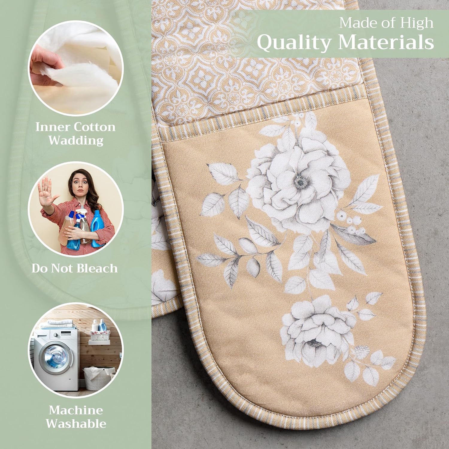 - 100% Quilted cotton: Crafted from premium quilted cotton for superior heat resistance and durability. This double oven mitt offers a soft, flexible grip and protects your hands during baking, roasting, or grilling