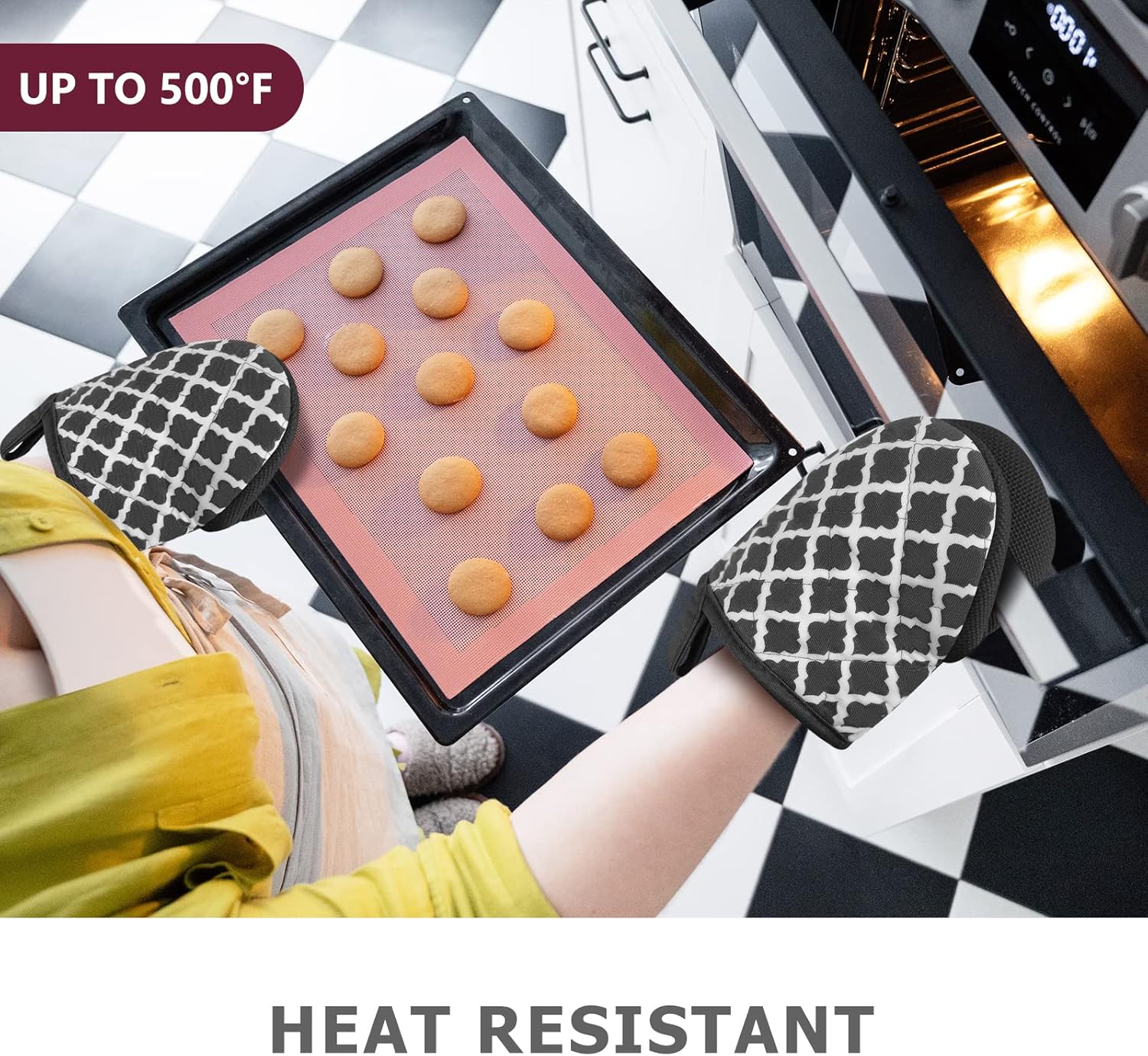 - 【Heat-Resistant】- Made of durable neoprene and cotton, offering protection up to 500°F/260℃. They will protect your hands from heat, steam and grease. These mitts measure 5.5 inches x 7 inches, perfect for small hands.
