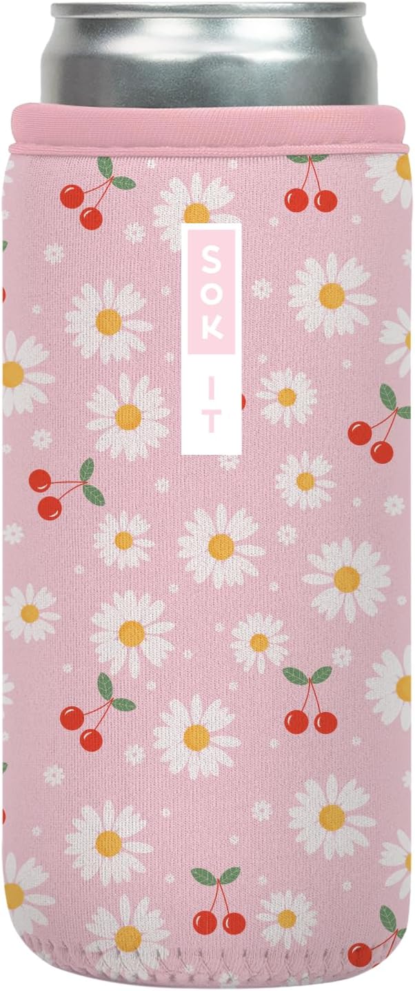 Sok It CanSok Sleeve for Beer & Soda Insulated Neoprene Cover (Cherry Bomb, 12oz Slim Can Sleeve)