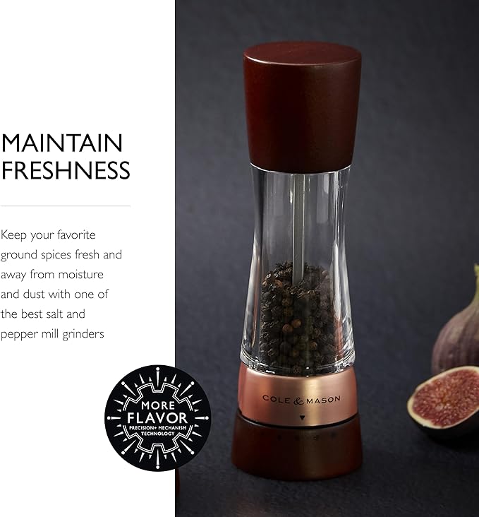 Cole & Mason Derwent Pepper Mill - Gourmet Precision Pepper Grinder - Refillable Seasoning and Spice Tools - Adjustable Black Peppercorn Grinder Settings - Rose Gold