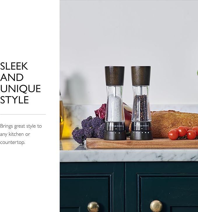 - Modern and Unique Style: The high-quality clear acrylic salt mill with a stylish black wood finish will look cool on any kitchen table