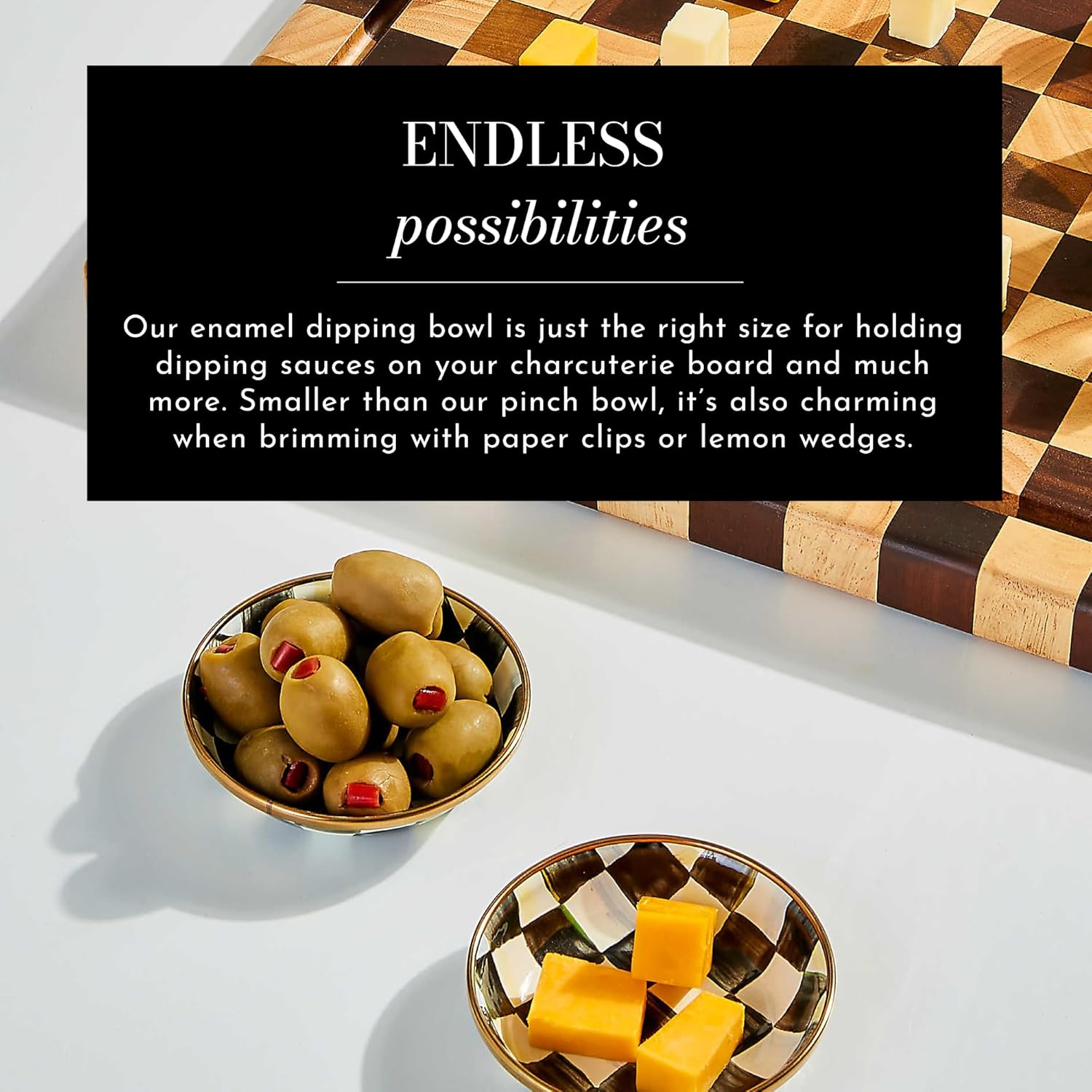 - ENAMEL BOWL FOR DIPPING: This Enamel Dipping Bowl is sized just right for small bites and fits perfectly into a MacKenzie-Childs wood bread and oil board. It’s a great addition to your dip bowls for parties and works great as an appetizer or sauce bowl.